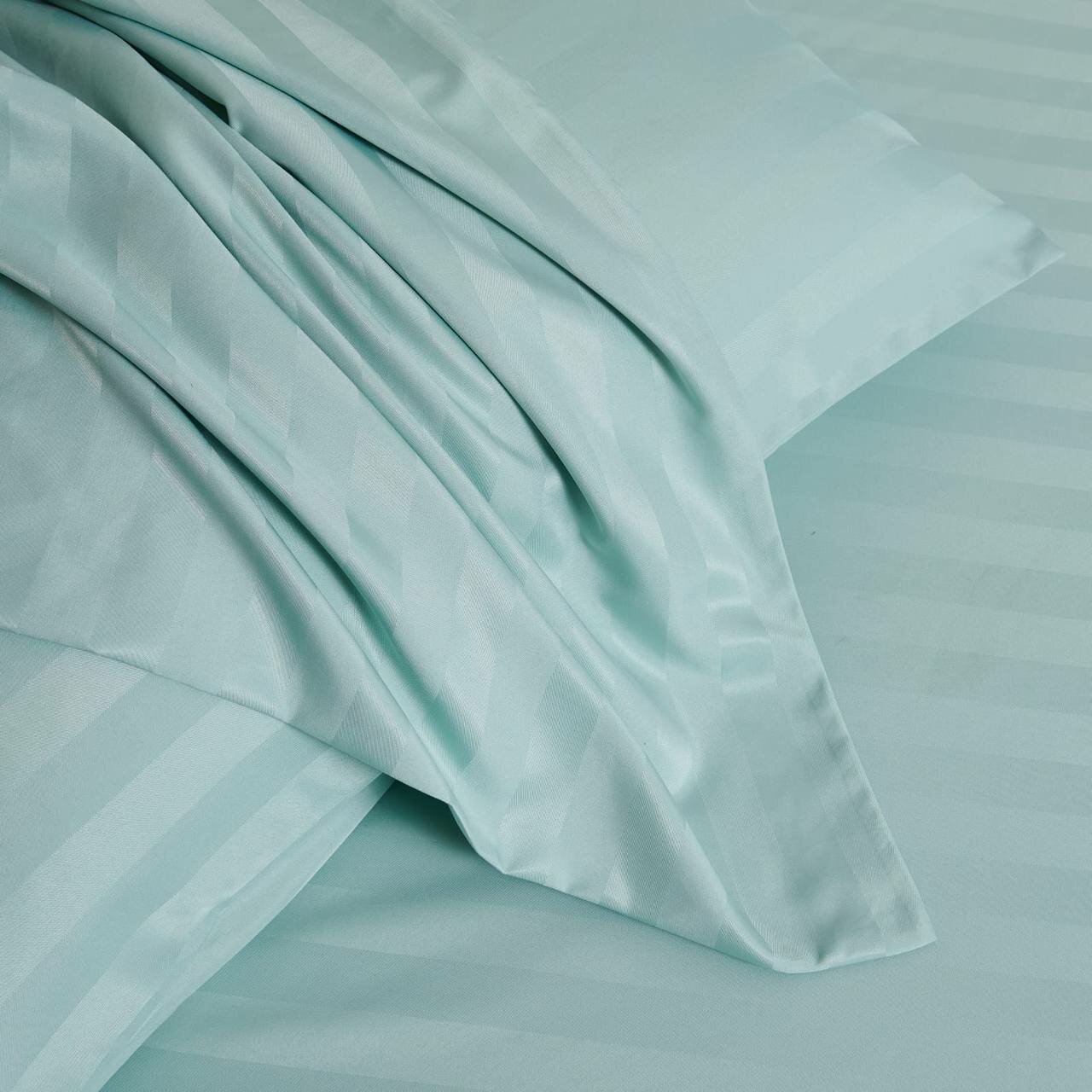 Постельное белье евро 2 спальное CandiesMency страйп сатин простыня на резинке 180x200+25 морской бриз