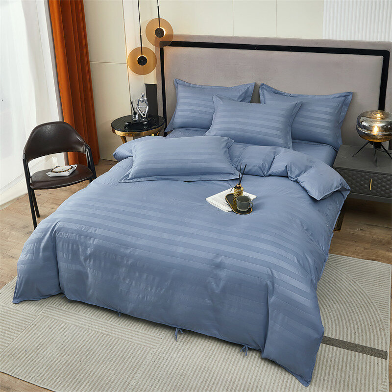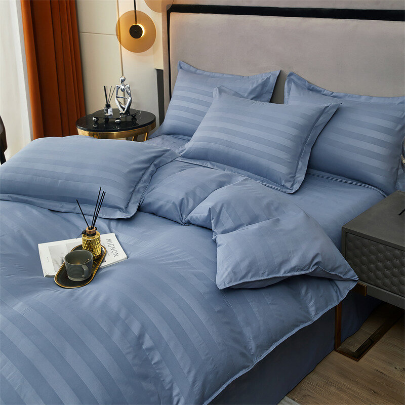 Постельное белье евро двуспальное синий BorisMency страйп сатин, простынь на резинке 180x200+25, пододеяльник 200x220, наволочки 50x70-2, 70x70-2