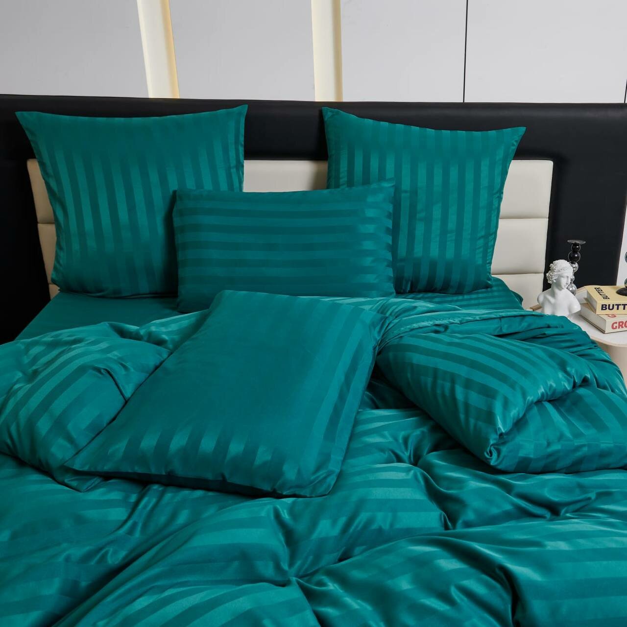 Постельное белье евростандарт двуспальное/ оливковый/ BorisMency/ Страйп сатин / простыня 180x200+25 /пододеяльник 200x220 / Наволочки 50x70-2, 70x70-2