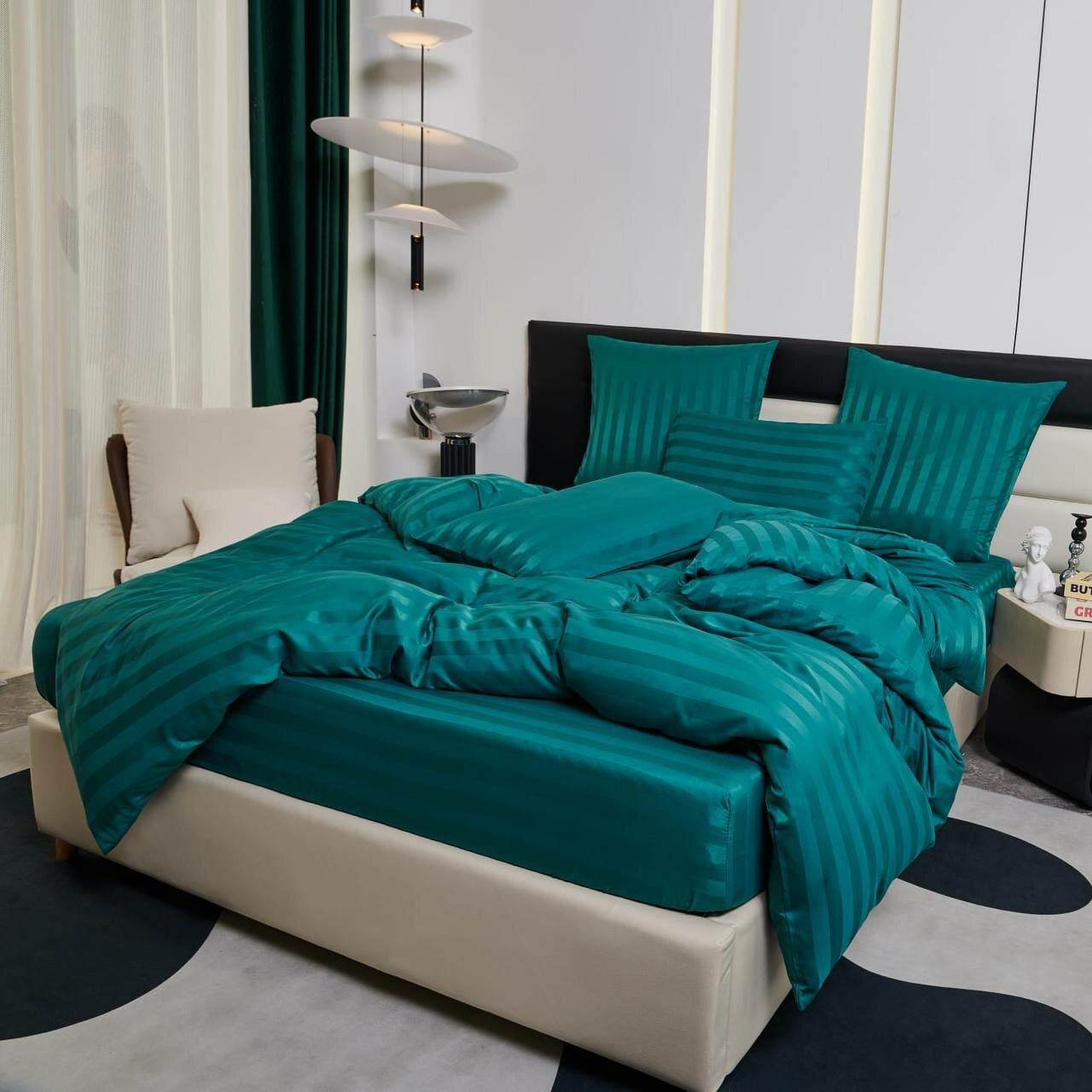 Постельное белье евростандарт двуспальное/ евро/ BorisMency/ Страйп сатин / простыня 180x200+25 / пододеяльник 200x220 / 4 Наволочки 50x70-2, 70x70-2