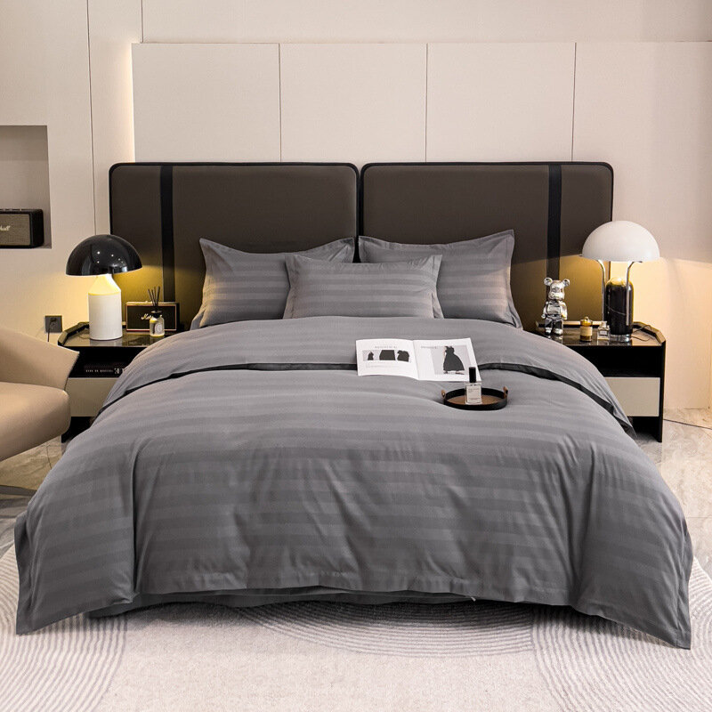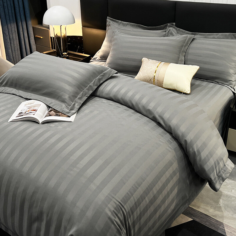 Постельное белье / евро/ Boris/ Страйп сатин / простынь 215x230/ пододеяльник 200x220/ 4 Наволочки 50x70-2, 70x70-2