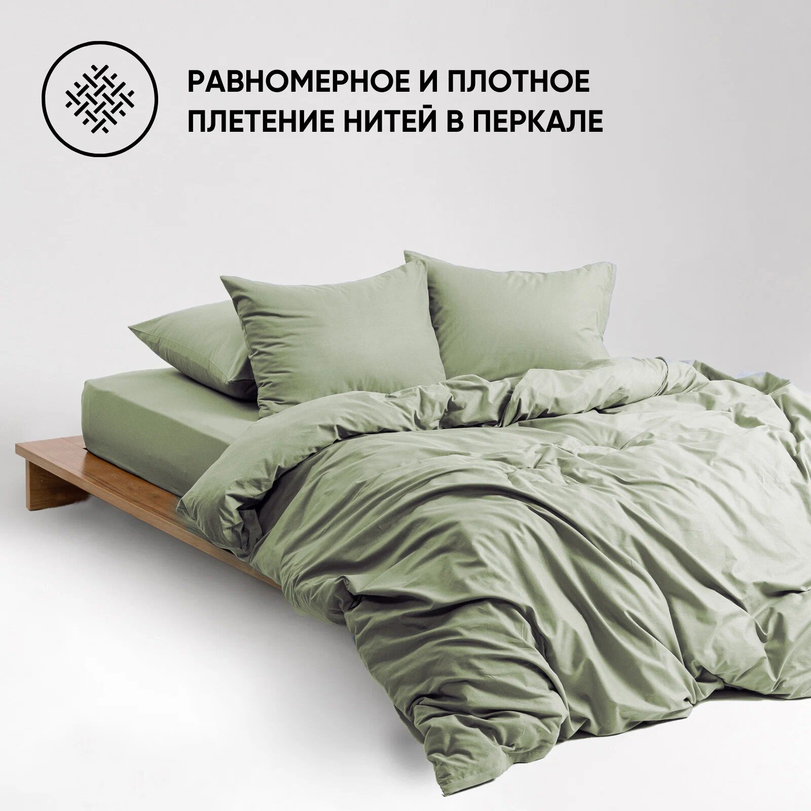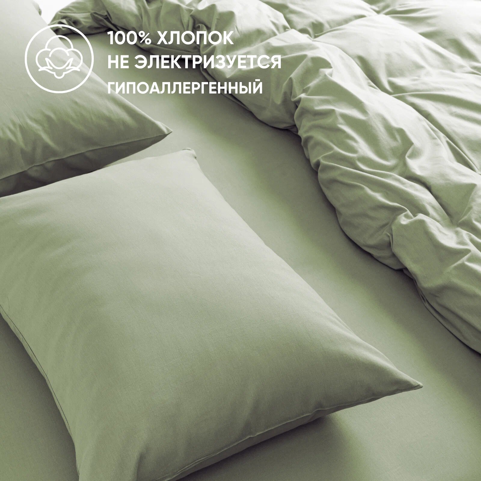 Простынь на резинке 200х200 см, Urban Family (аналог икеа) Олива, перкаль, 100% хлопок