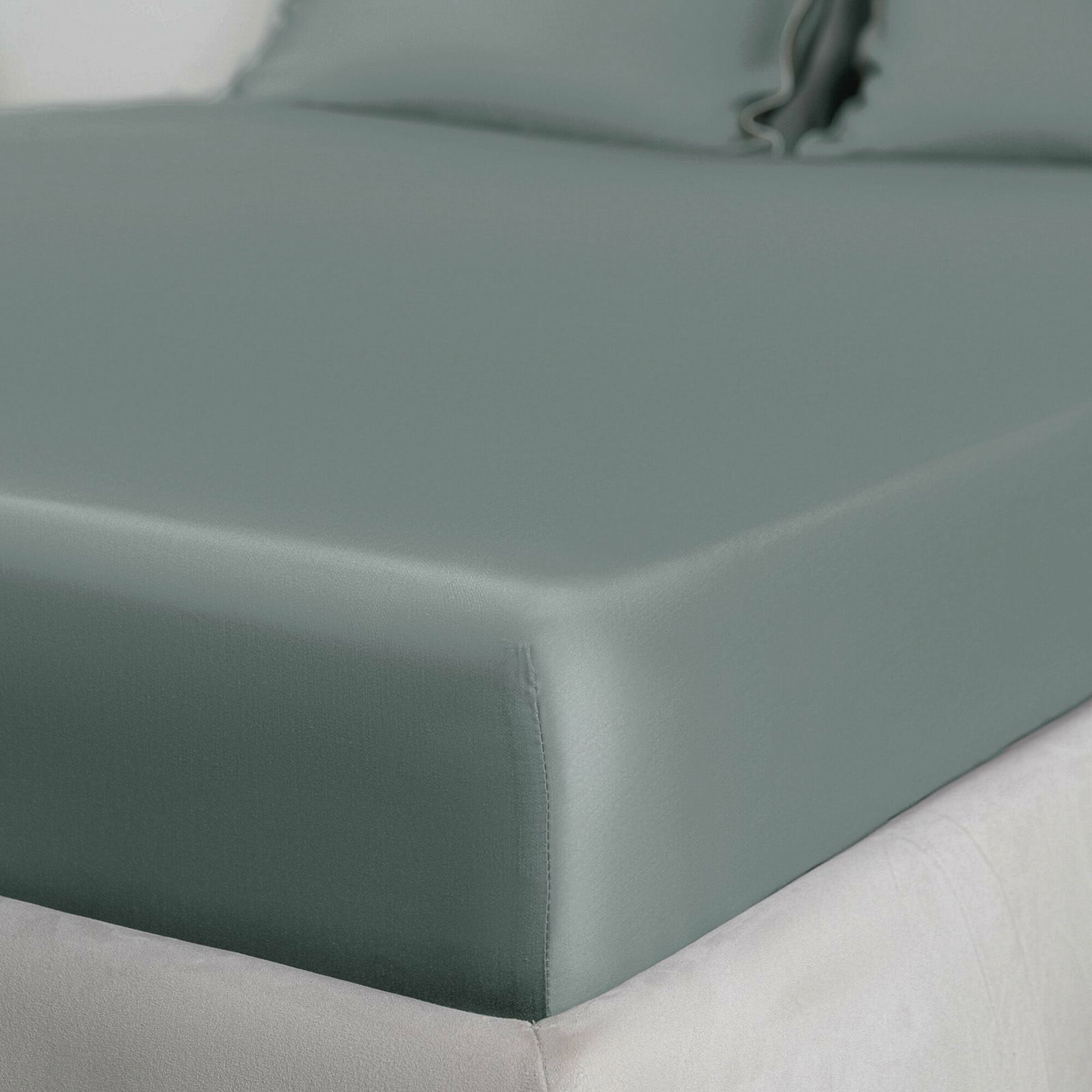 Купить Простынь на резинке 180х200 см, Antonio Orso двала, 100% хлопок, серо-зеленый