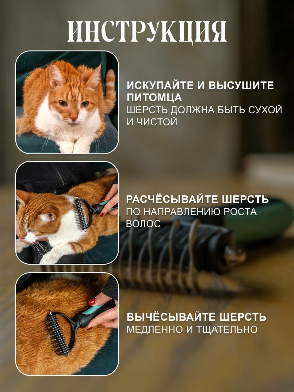 | Дополнительная информация | применение колтунорез-дешеддер, расческа для кошек и собак, должно происходить согласно инструкции, которая идет вместе с товаром. |
