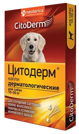 Капли дерматологические для собак 10-30 кг CitoDerm для шерсти и кожи 4 шт х 3 мл интересное: