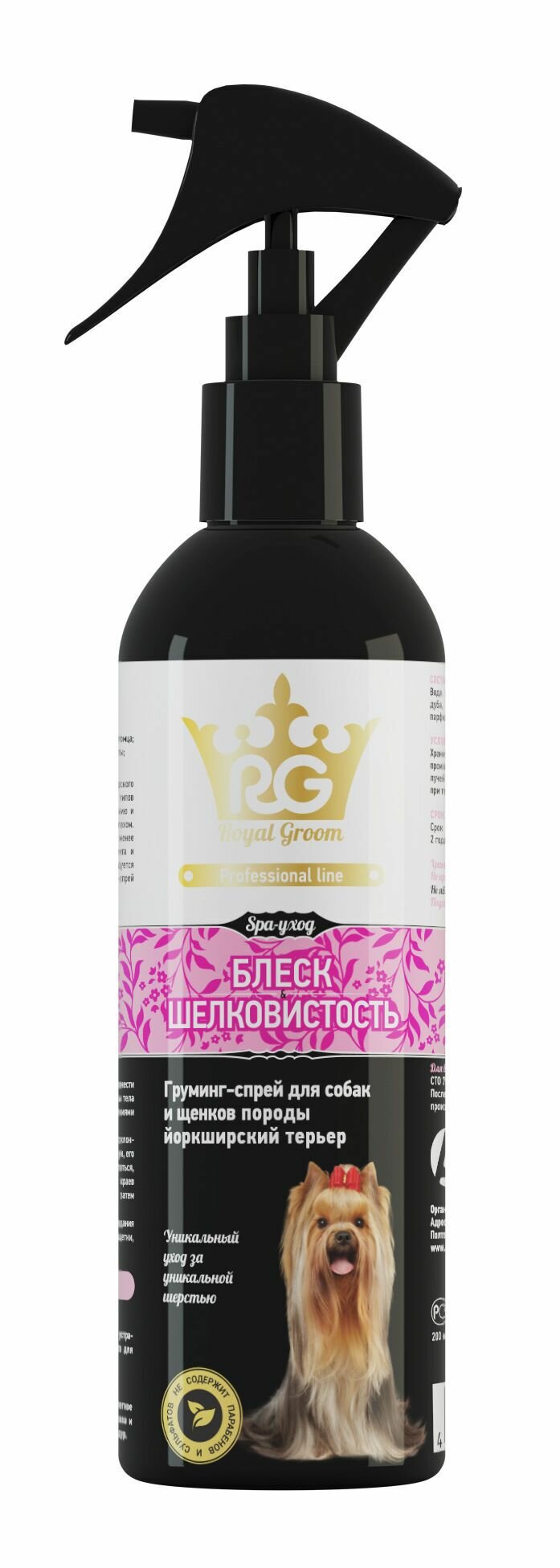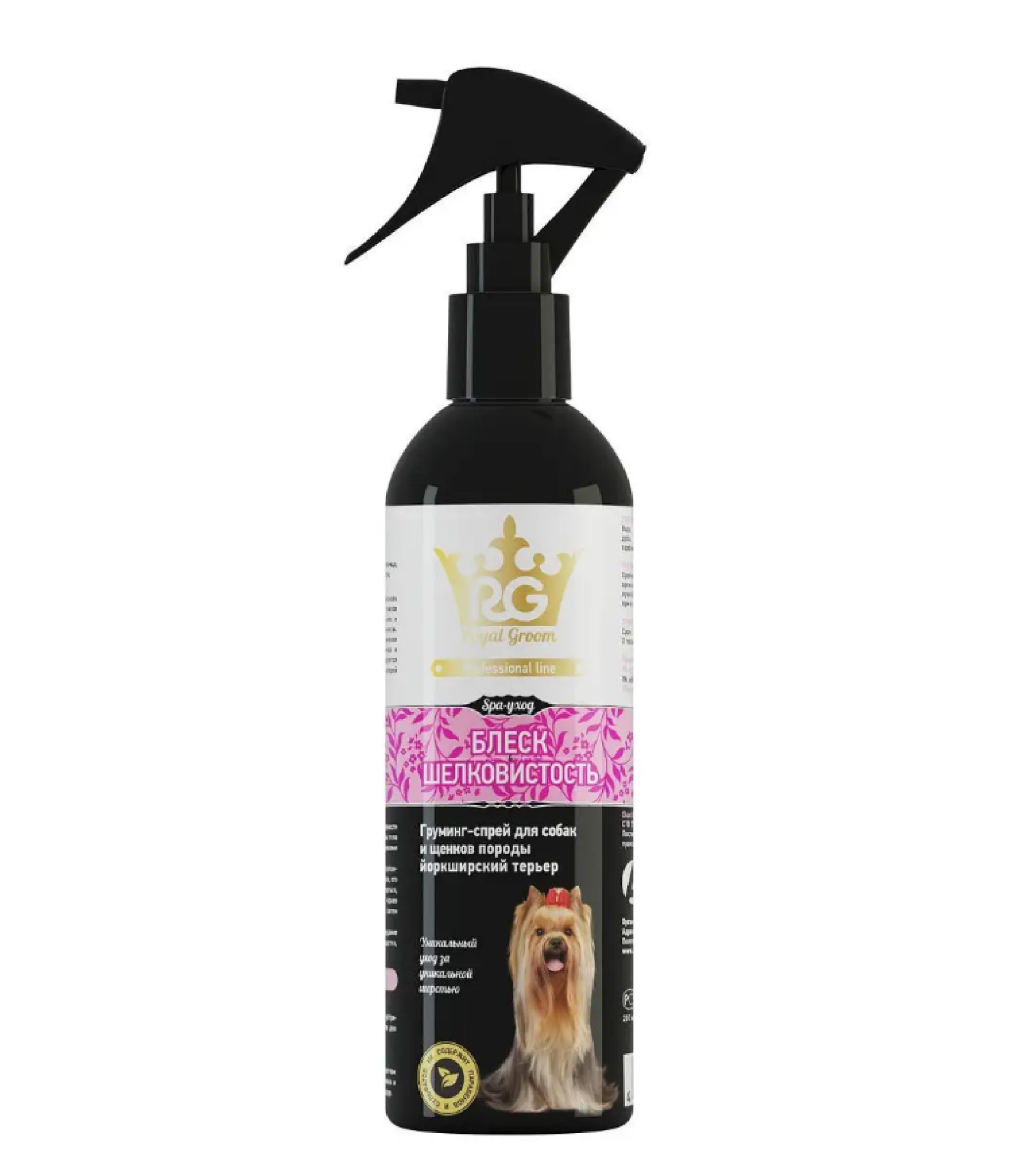 Купить Груминг-спрей ROYAL GROOM "Блеск шелковистость" для собак породы йоркширский терьер 200 мл