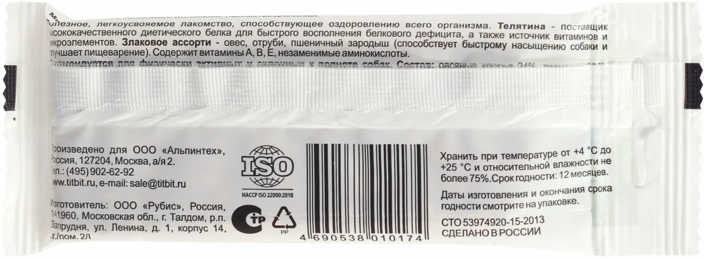TiTBiT Лакомство для собак TiTBiT Мюсли мясные с телятиной и злаками 40г интересное: