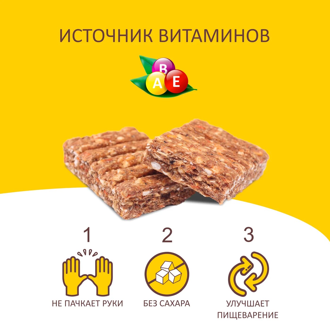 | Состав | Овсяные хлопья 24%, телятина 20%, кукурузный крахмал 16%, отруби 9%, тыква 8%, хлопья пшен. зарод. 6%, морковь 6%, мед 4%, масло растительное 2%, фруктоза 2%, дрожжевой экстракт 2%, фитокомплекс экстрактов растений 1%. |
