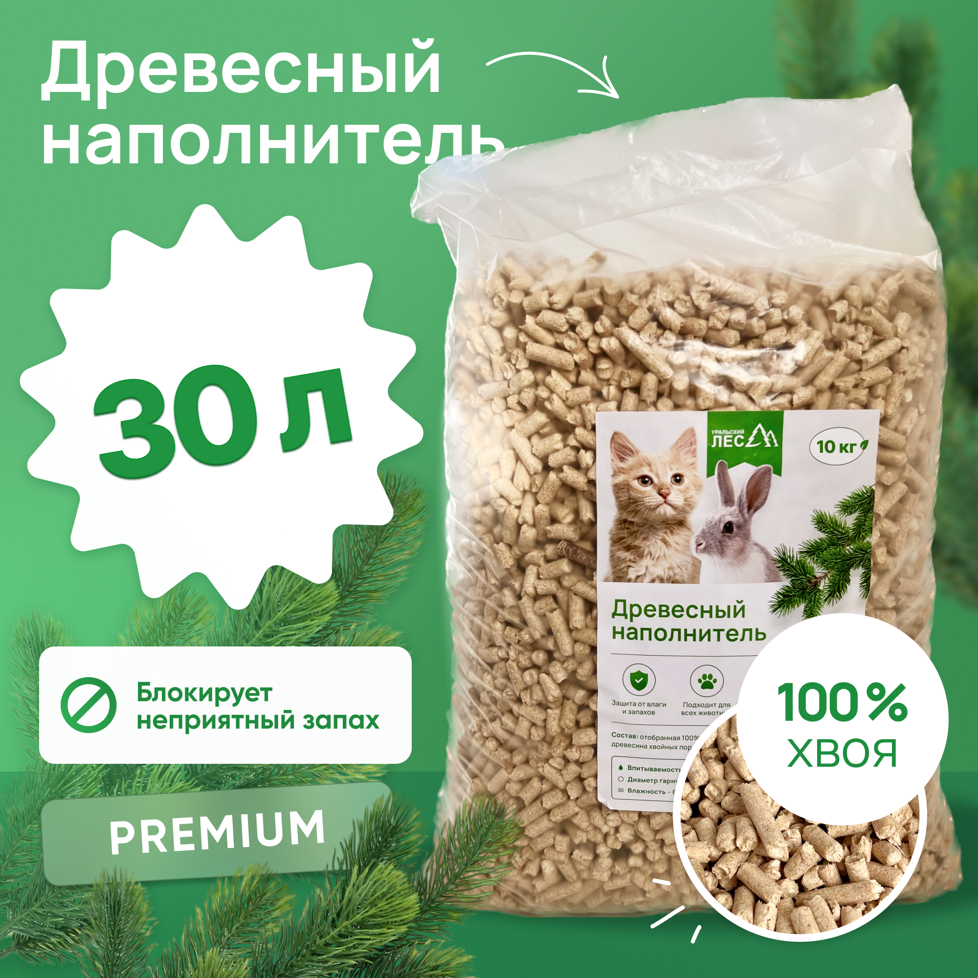 Древесный впитывающий наполнитель «Уральский лес» (сосна) для кошачьего туалета 10 кг, 30 литров интересное: