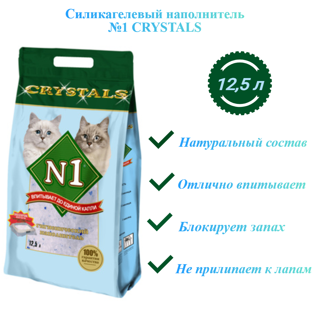 Наполнитель N1 Crystals Силикагелевый 12,5л (Подарок в упаковке)