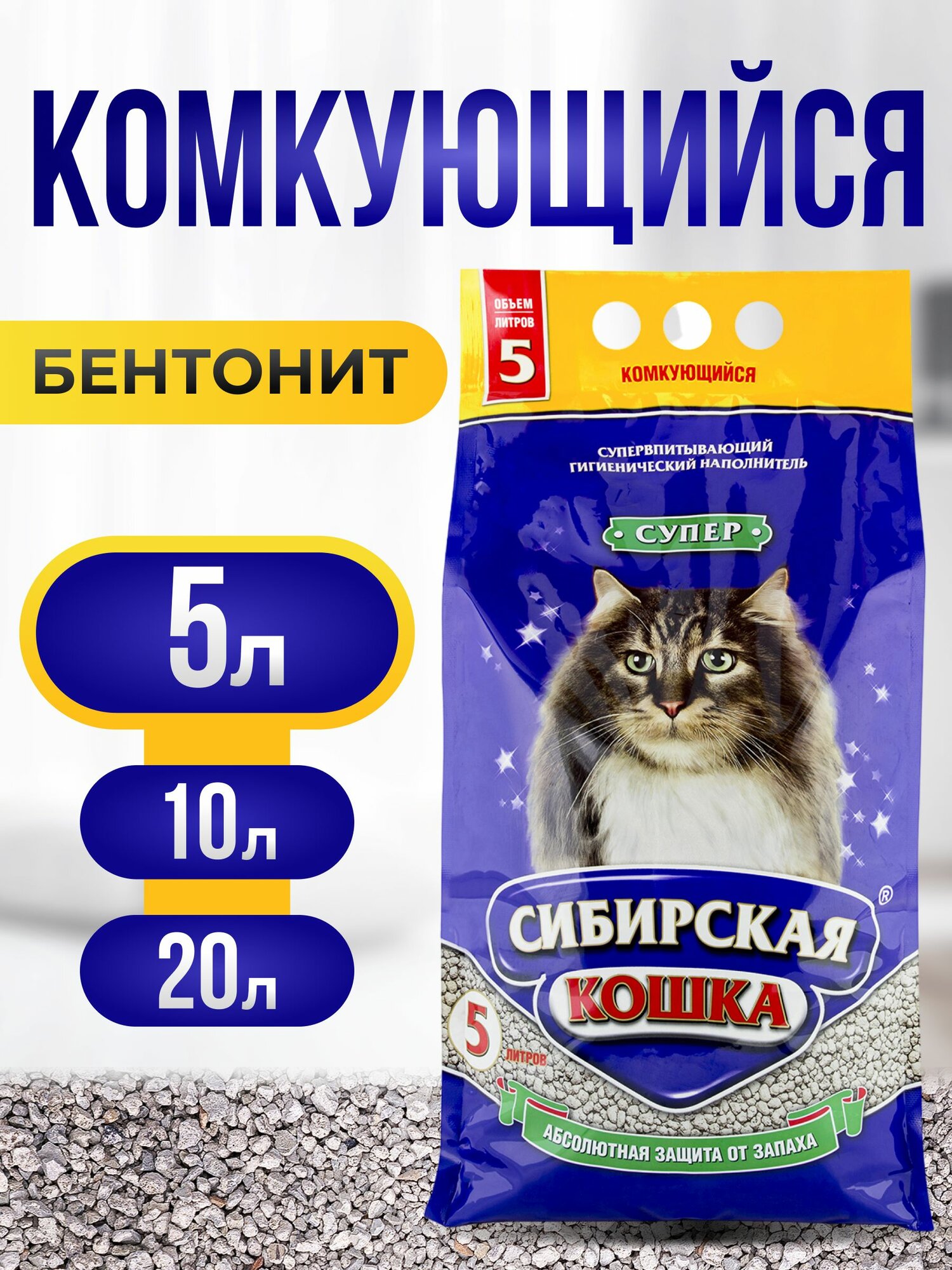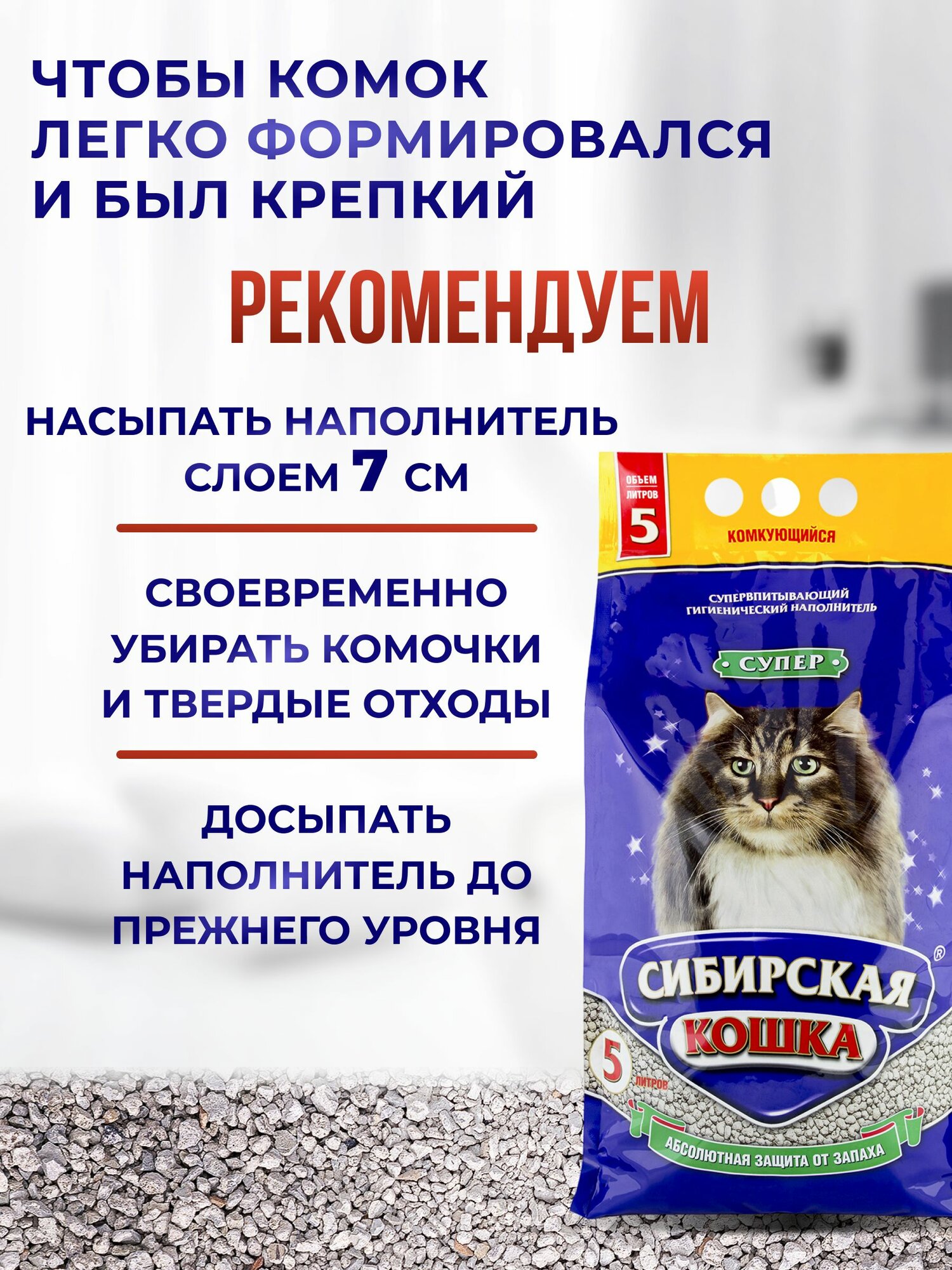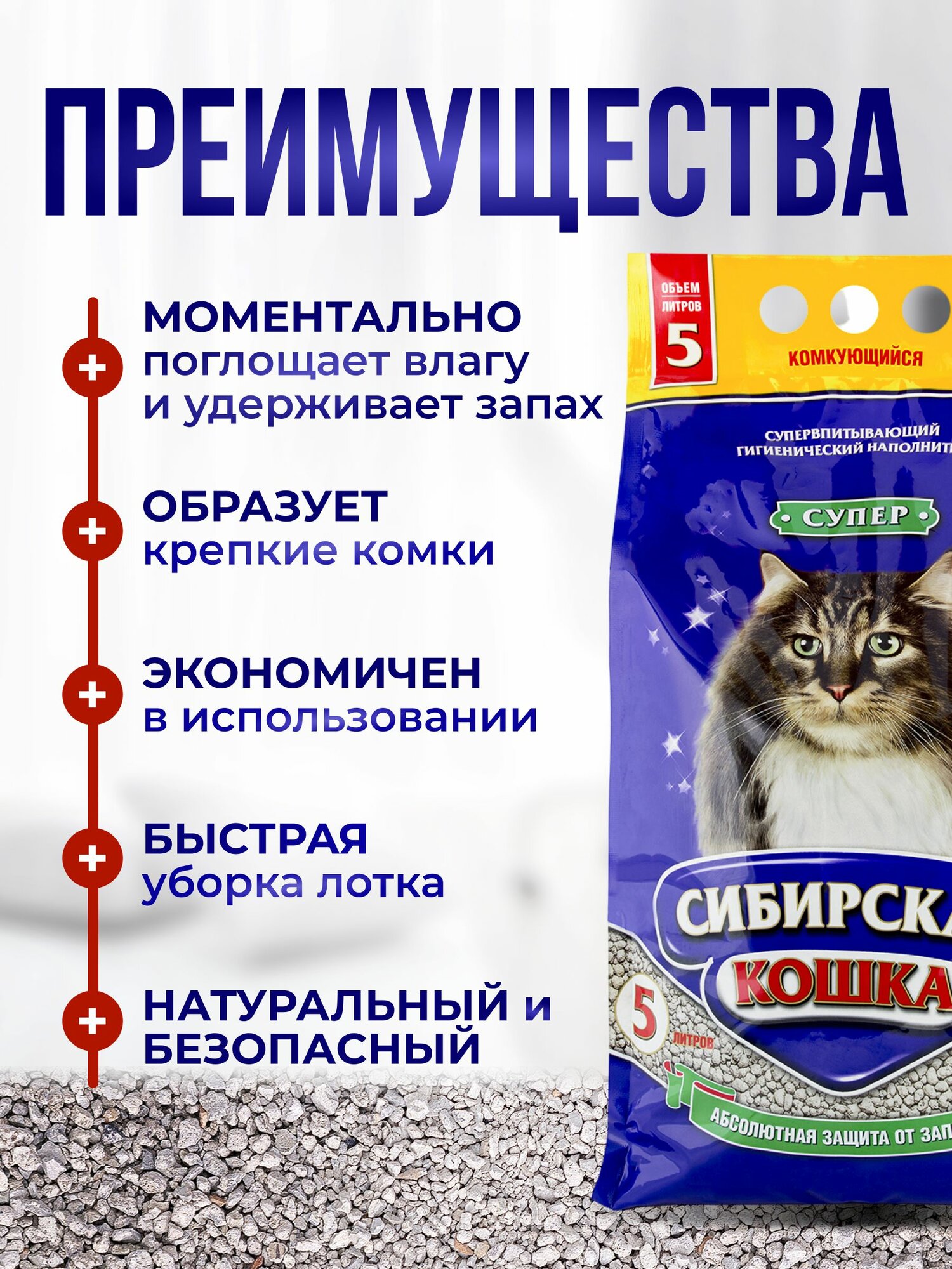 Наполнитель для кошачьего туалета Супер 5л сибирская кошка, комкующийся, глина бентонитовая