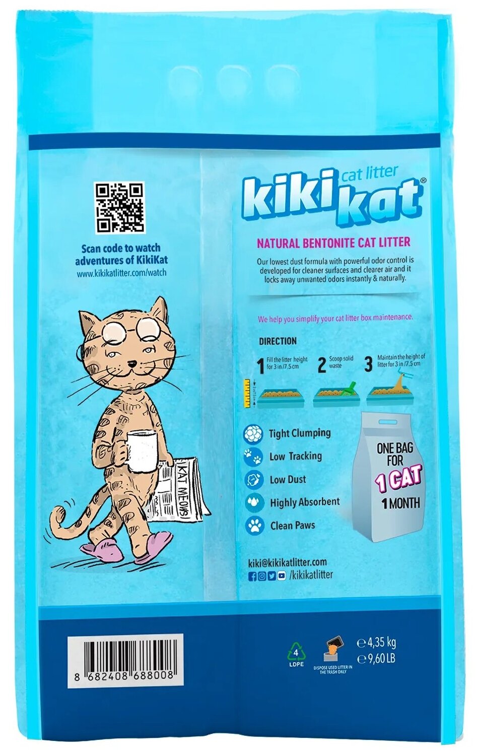 Наполнитель KikiKat "Горная свежесть" супер-белый для кошачьего туалета, комкующийся, бентонитовый, 5 л