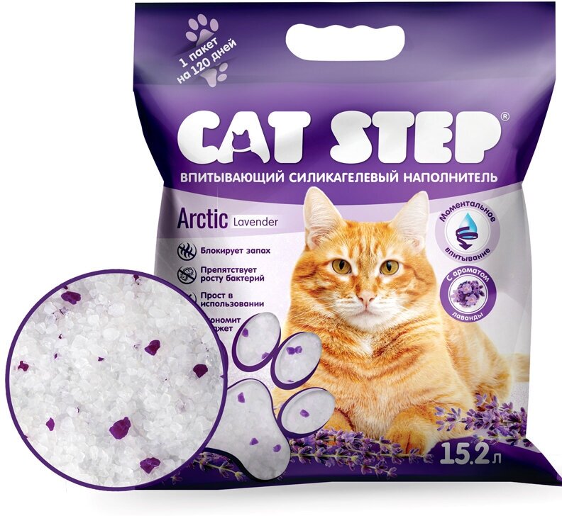 Купить Cat Step Arctic Lavеnder наполнитель силикагелевый впитывающий с ароматом лаванды 6,6 кг, 15,2 л.
