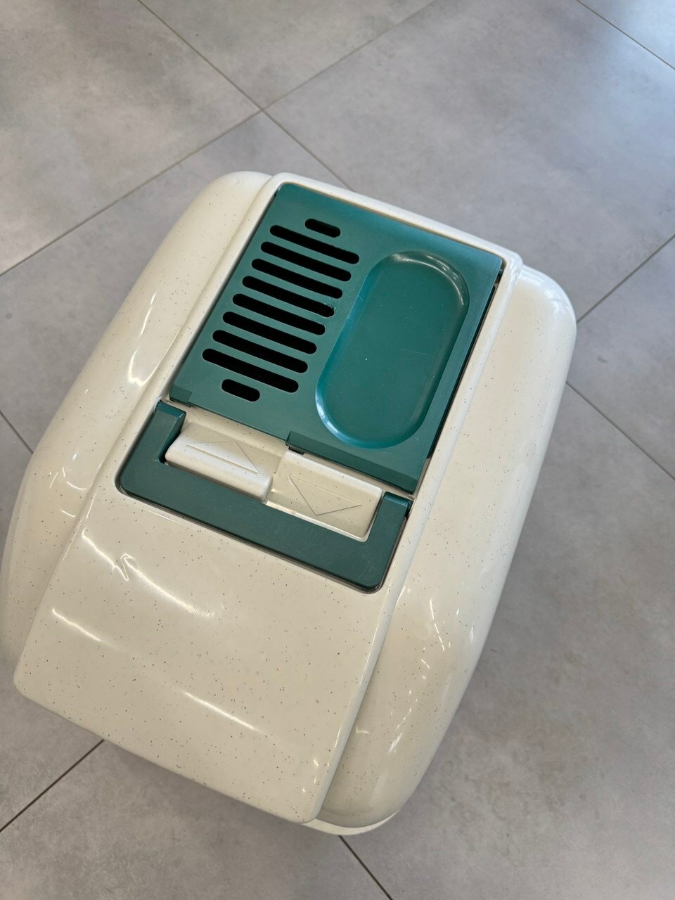 Закрытый туалет для кошек "Чистый котик"с коридором и фильтром,зеленый,пластик 57*52*38 см