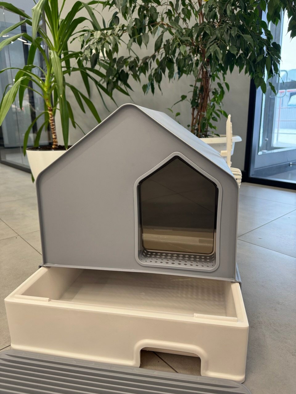 Закрытый лоток для кошачьего туалета с совком, угольным фильтром и пакетом "Чистый котик" 57х44х40 см