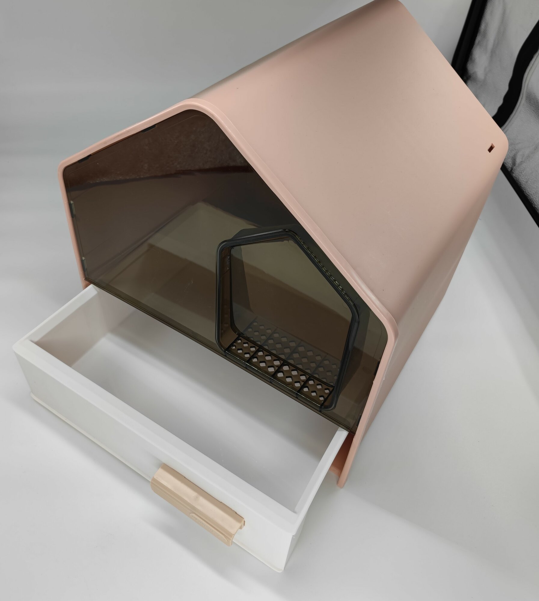Закрытый лоток-домик с выдвижным поддоном , совком «Чистый котик» " 46х44х46 см, розовый