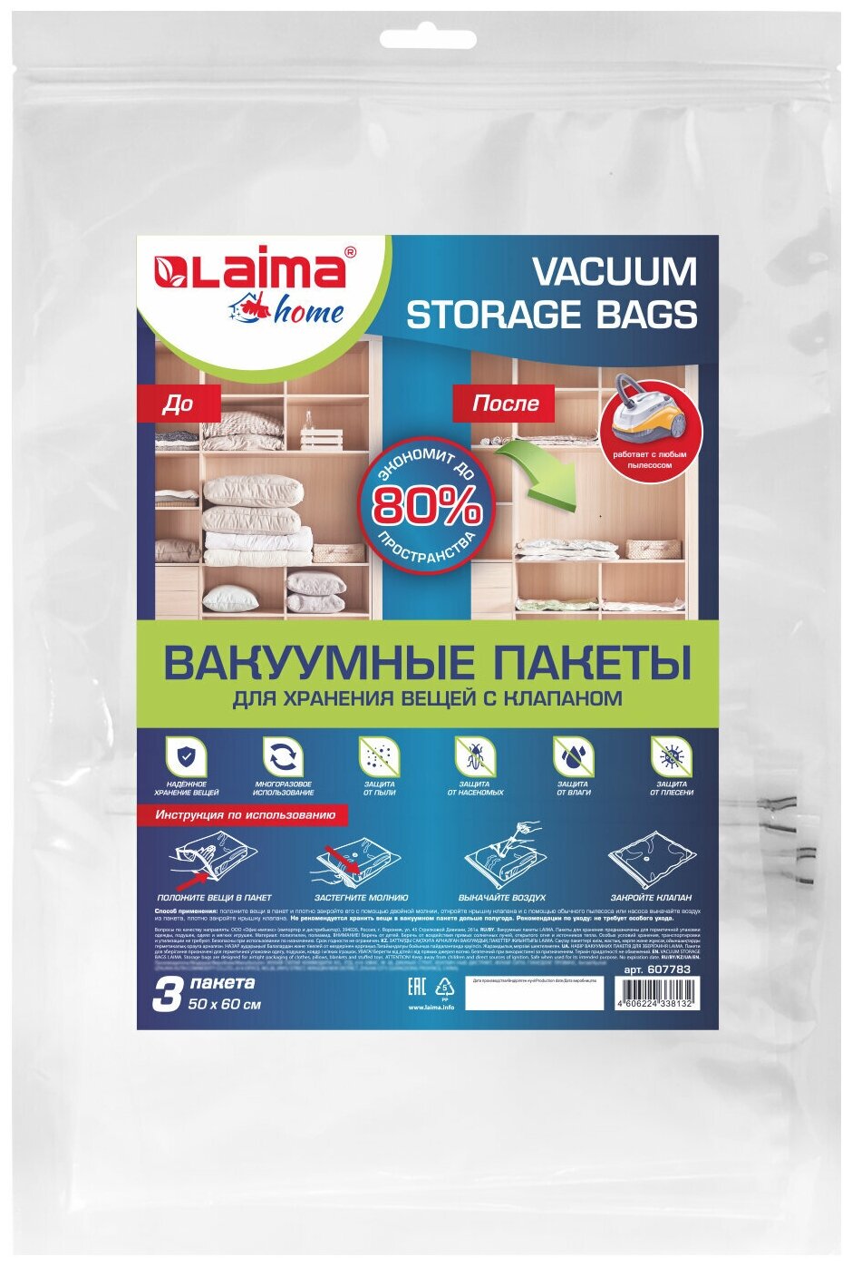 Вакуумный пакет с клапаном для хранения вещей 50×60 см, комплект 3 шт., LAIMA HOME, 607783