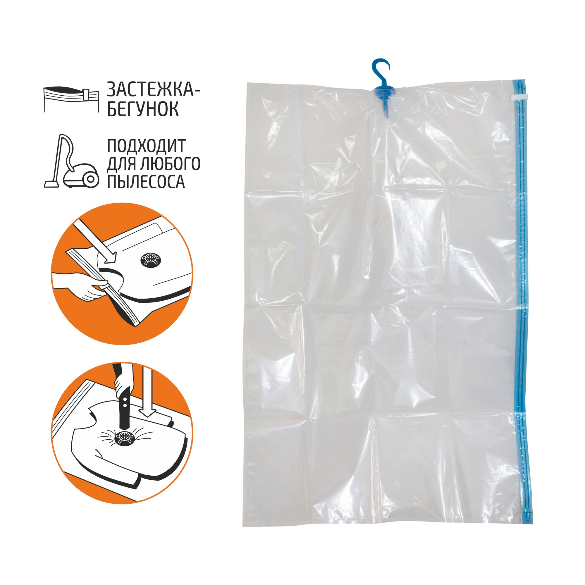 Вакуумный пакет 70х105 см с клапаном для пылесоса и вешалкой VB5