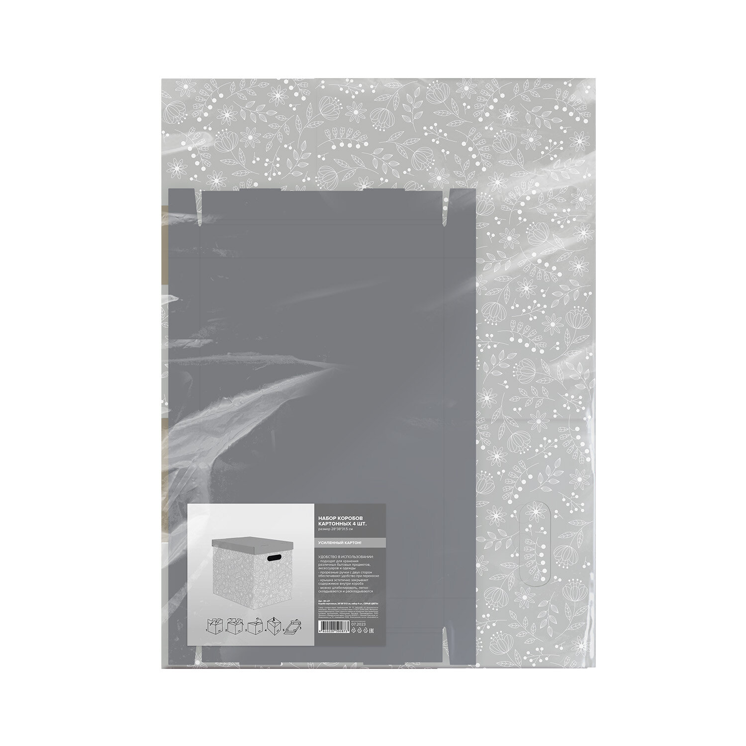 Купить Коробки для хранения вещей, игрушек, обуви, картонные, короб для хранения с крышкой, набор 8 шт, серые цветы