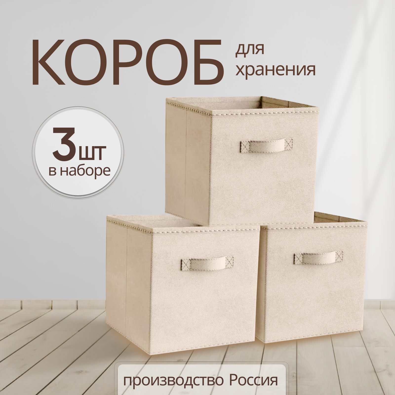 СохранитьКоробки для хранения вещей, игрушек, белья, 3 шт. Storage boxes бежевый цвет интересное: