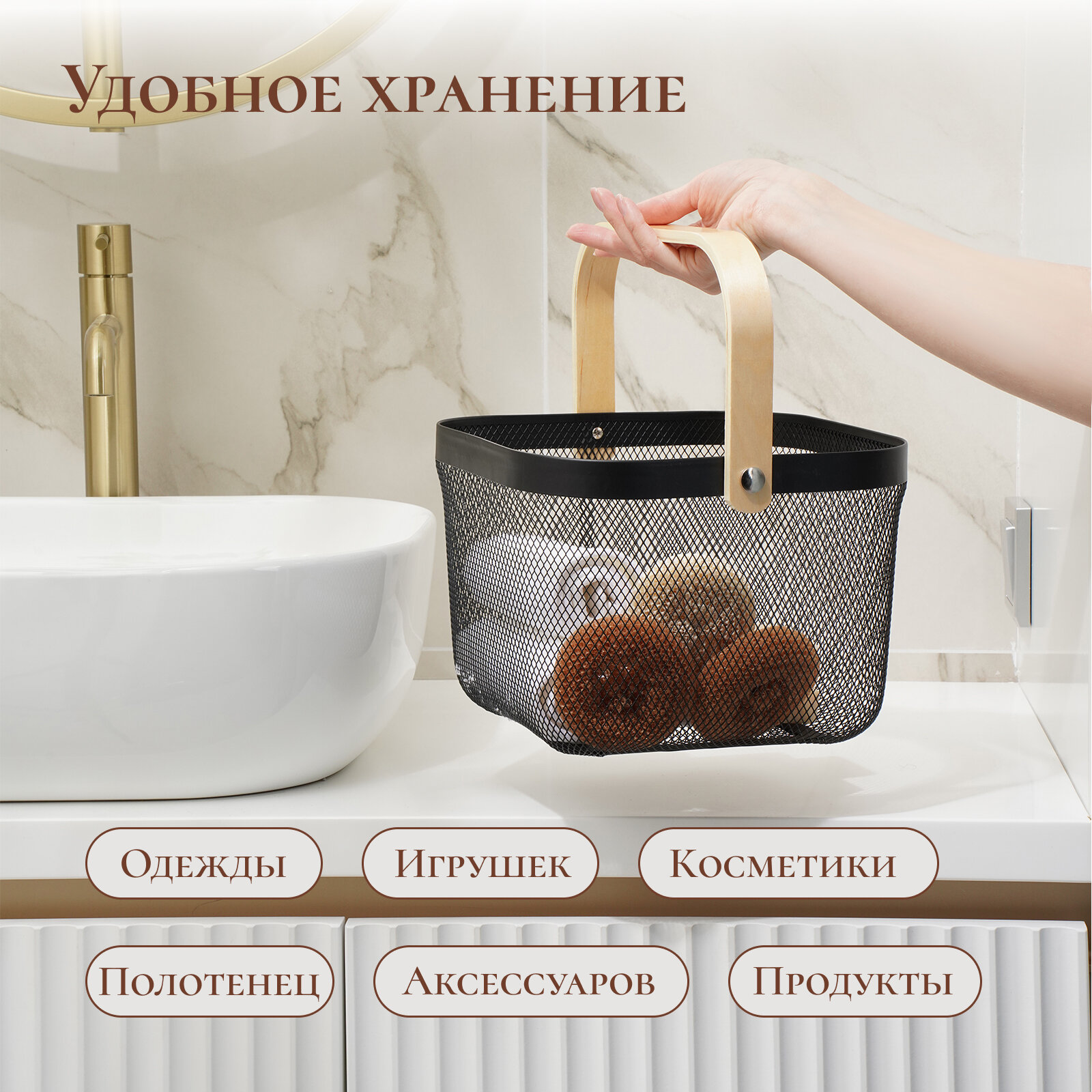 Корзинка универсальная для хранения в ванную LaDо́m, органайзер металлический, цвет черный
