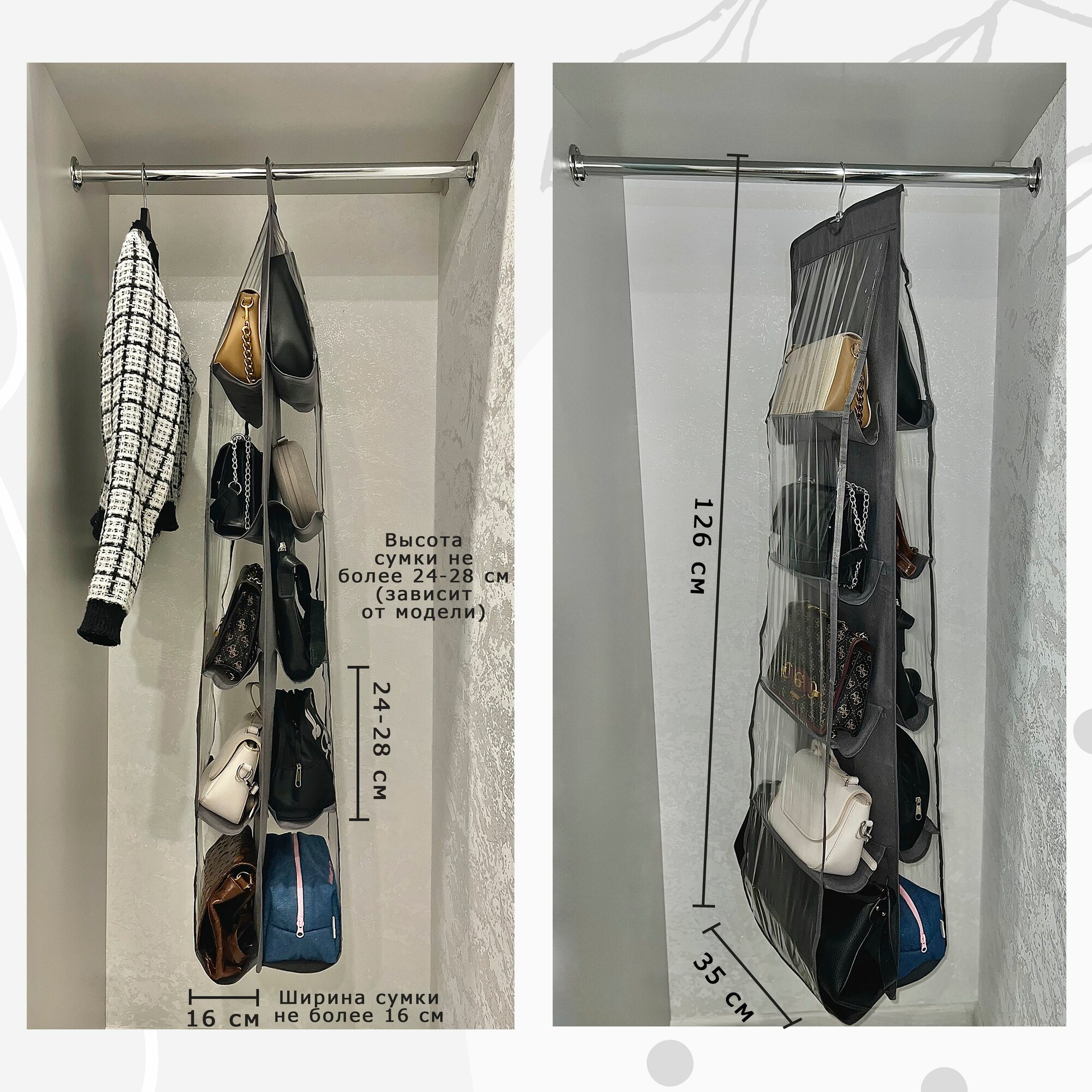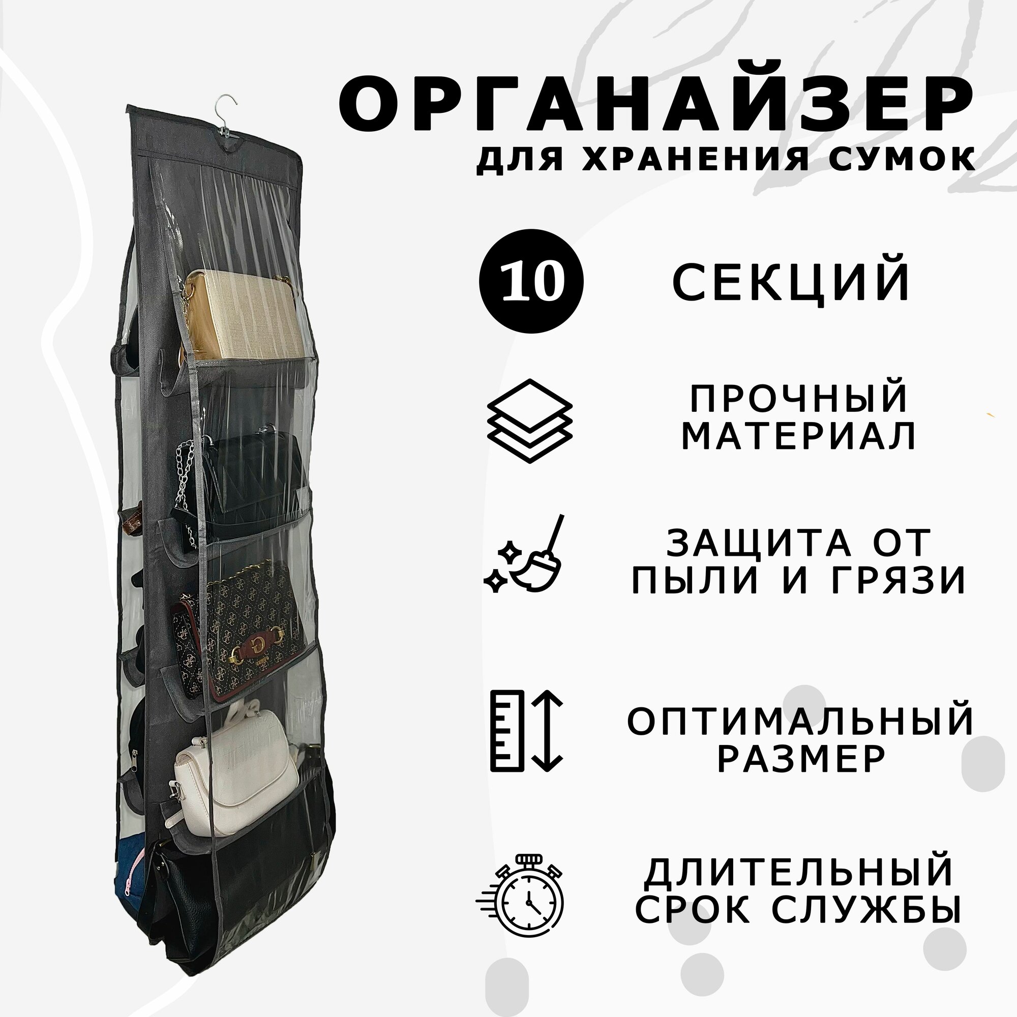 Купить Органайзер для хранения вещей, сумок, одежды и аксессуаров подвесной двусторонний/ кофр в шкаф, на дверь под принадлежности / 10 секций ячеек