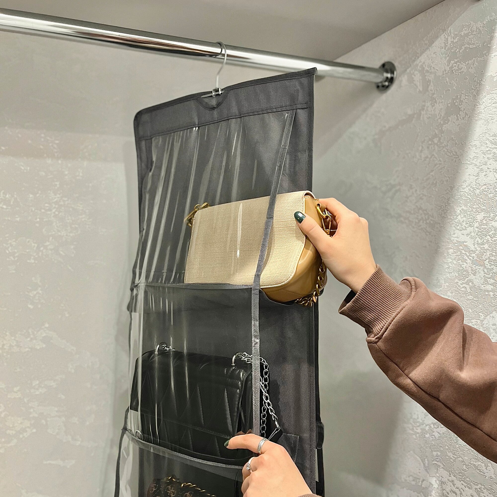 Органайзер для хранения вещей, сумок, одежды и аксессуаров подвесной двусторонний / кофр в шкаф, на дверь под принадлежности / 8 секций ячеек / чёрный