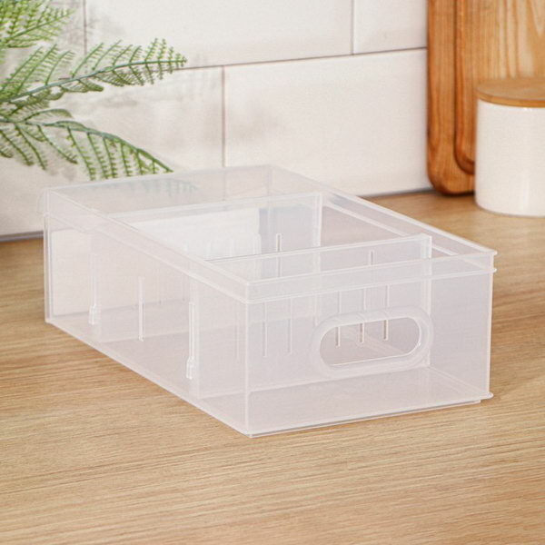 | Особенности | прозрачный / ручки для переноски / с разделителями / складной |