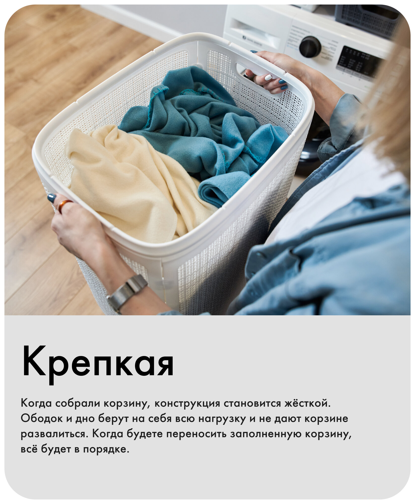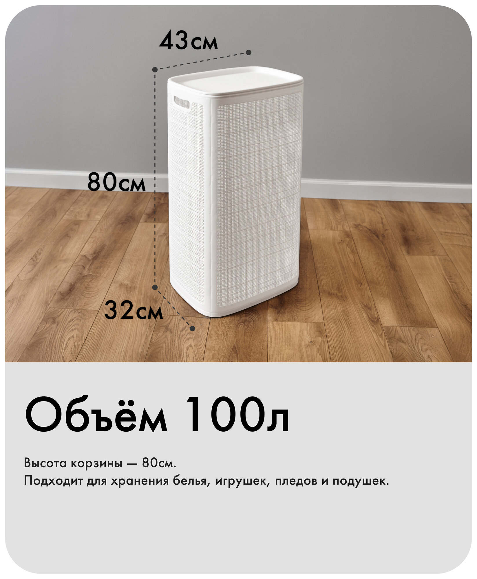| Особенности | плетеная / ручки для переноски / с крышкой / складной / узкая |
