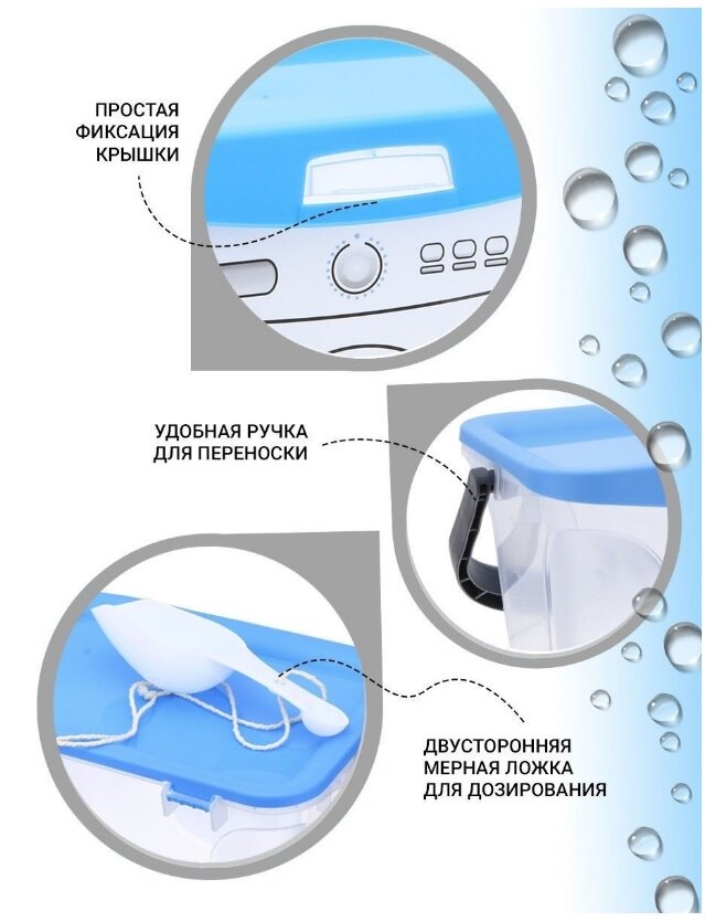 | Дополнительная информация | Данный контейнер для стирального порошка сэкономит место и облегчит Вашу стирку |