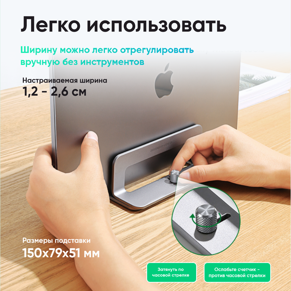 Подставка UGREEN LP258 (20471) Vertical Laptop Stand вертикальная для ноутбука. Цвет: серебристый интересное: