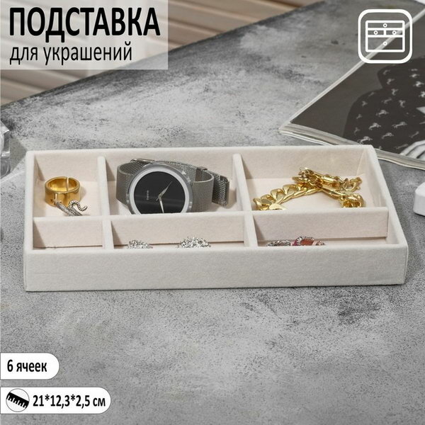 Подставка для украшения 6 мест, флок, 21*12,3*2,5 см, цвет серый 9285216