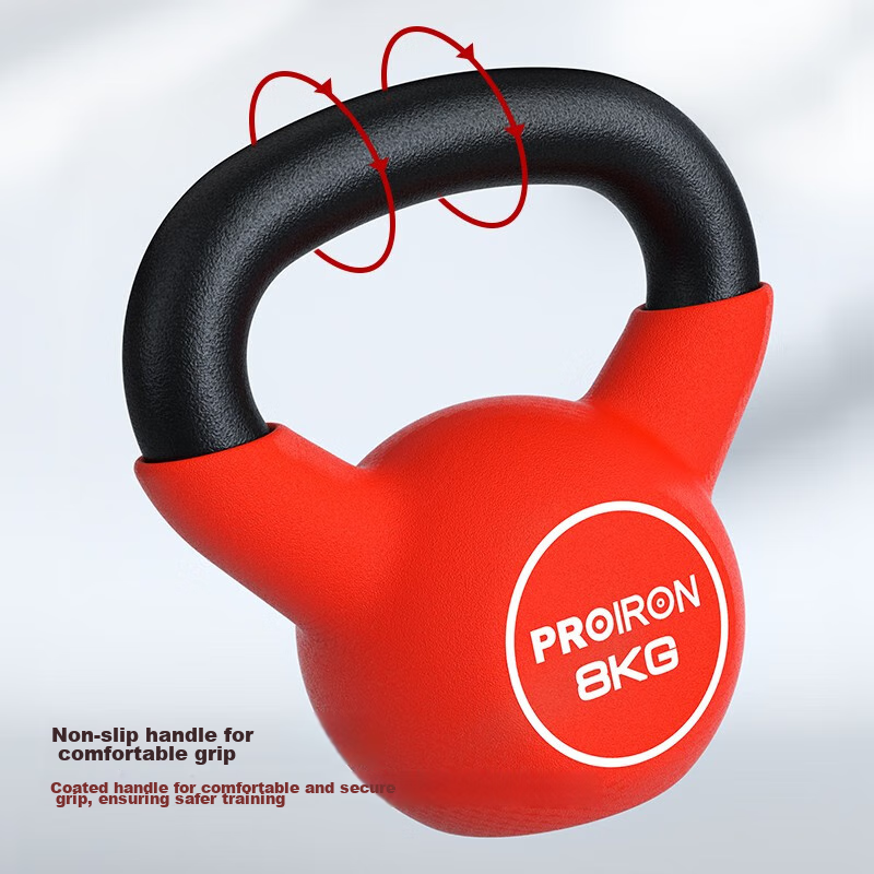 Гиря 8 кг, чугунная, неопреновая, PROIRON, для фитнеса, красная