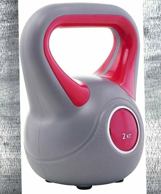 Купить Гиря для фитнеса пластиковая, вес - 2 кг, Цвет - серый/розовый