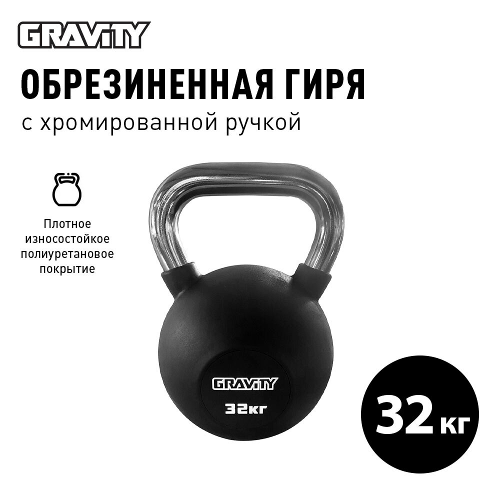 Обрезиненная гиря Gravity, 32 кг, черная интересное: