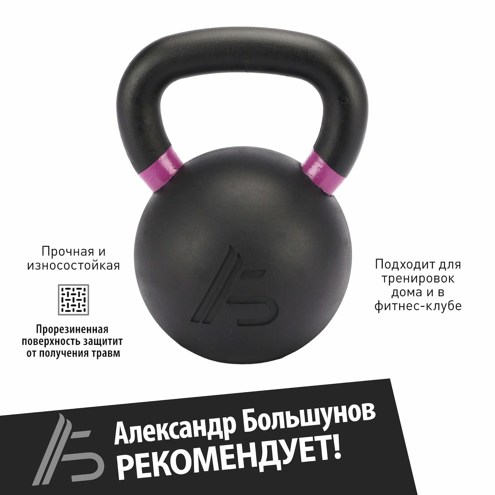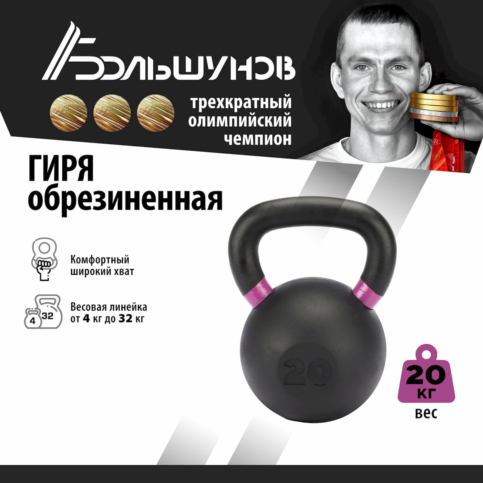 Обрезиненная гиря Александр Большунов, черная, 20кг интересное: