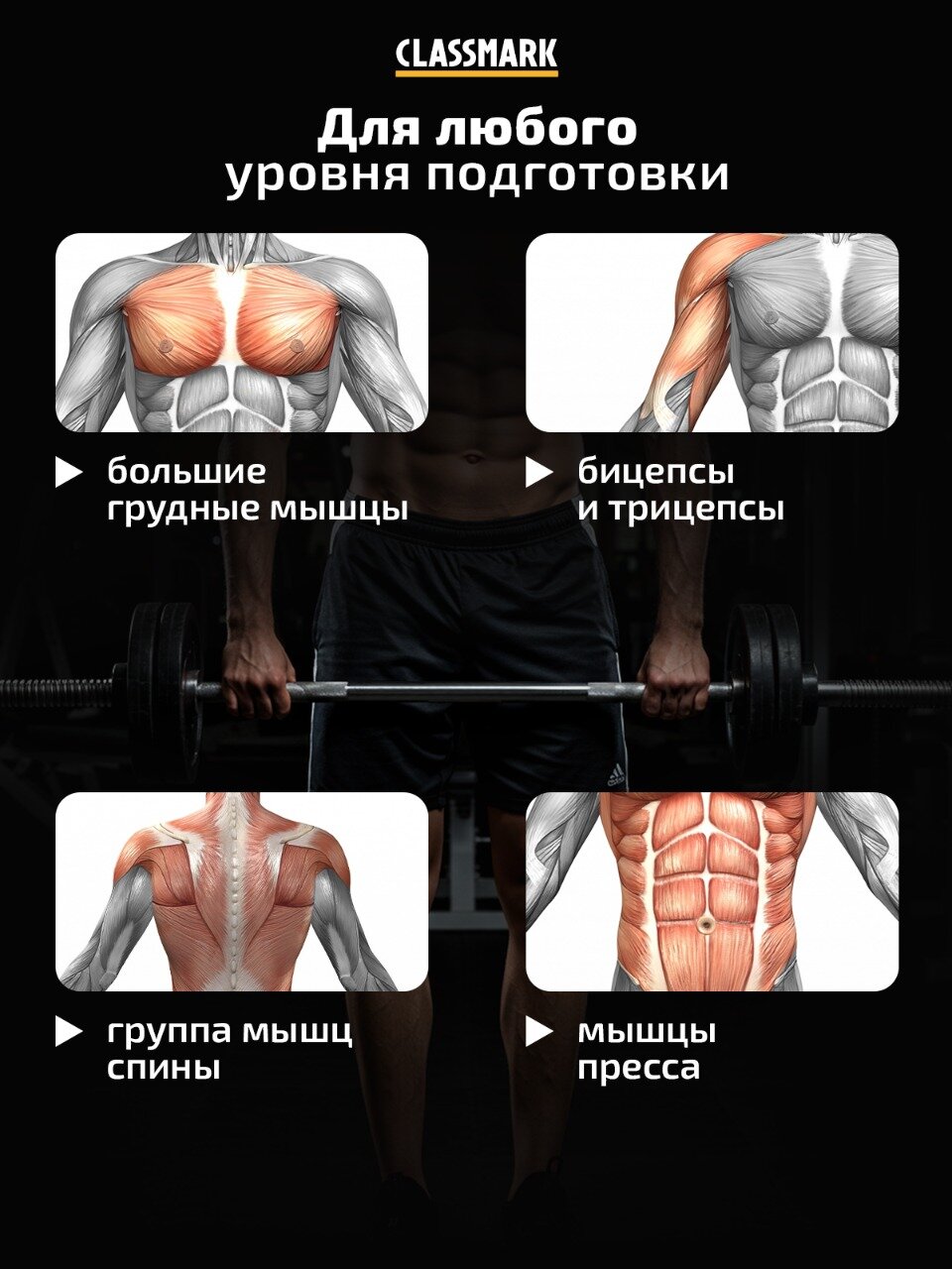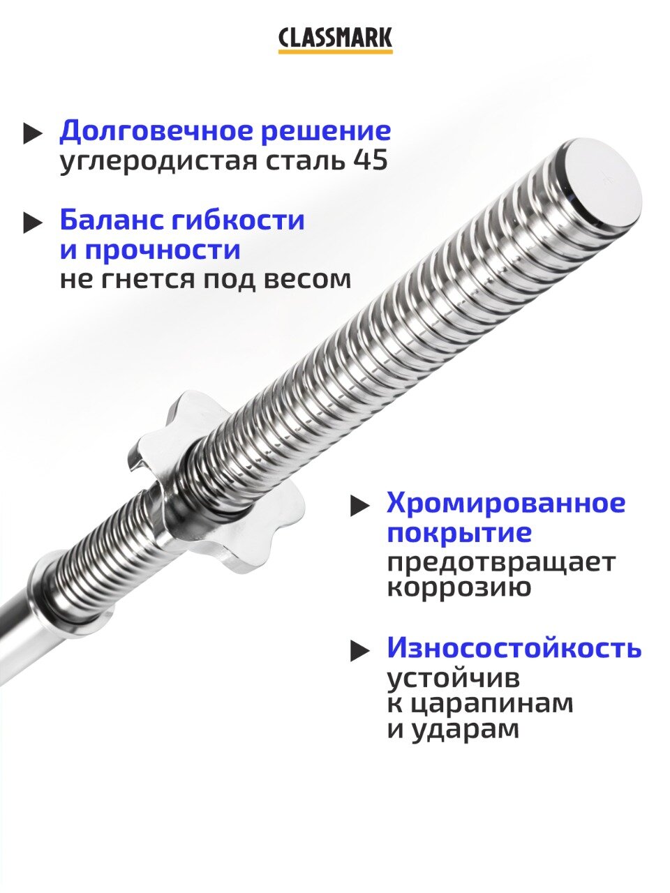 Гриф для штанги Classmark, прямой, 120 см, железный, серебристый интересное: