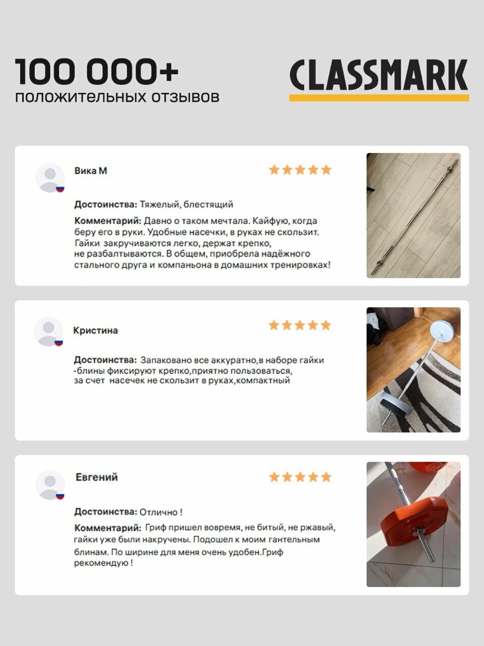 Ниже Вы можете прочитать отзывы на Гриф для штанги Classmark, прямой, 120 см, железный, серебристый, ознакомится с подробными характеристиками, посмотреть интересные обзоры и фотографии на Гриф для штанги Classmark, прямой, 120 см, железный, серебристый.