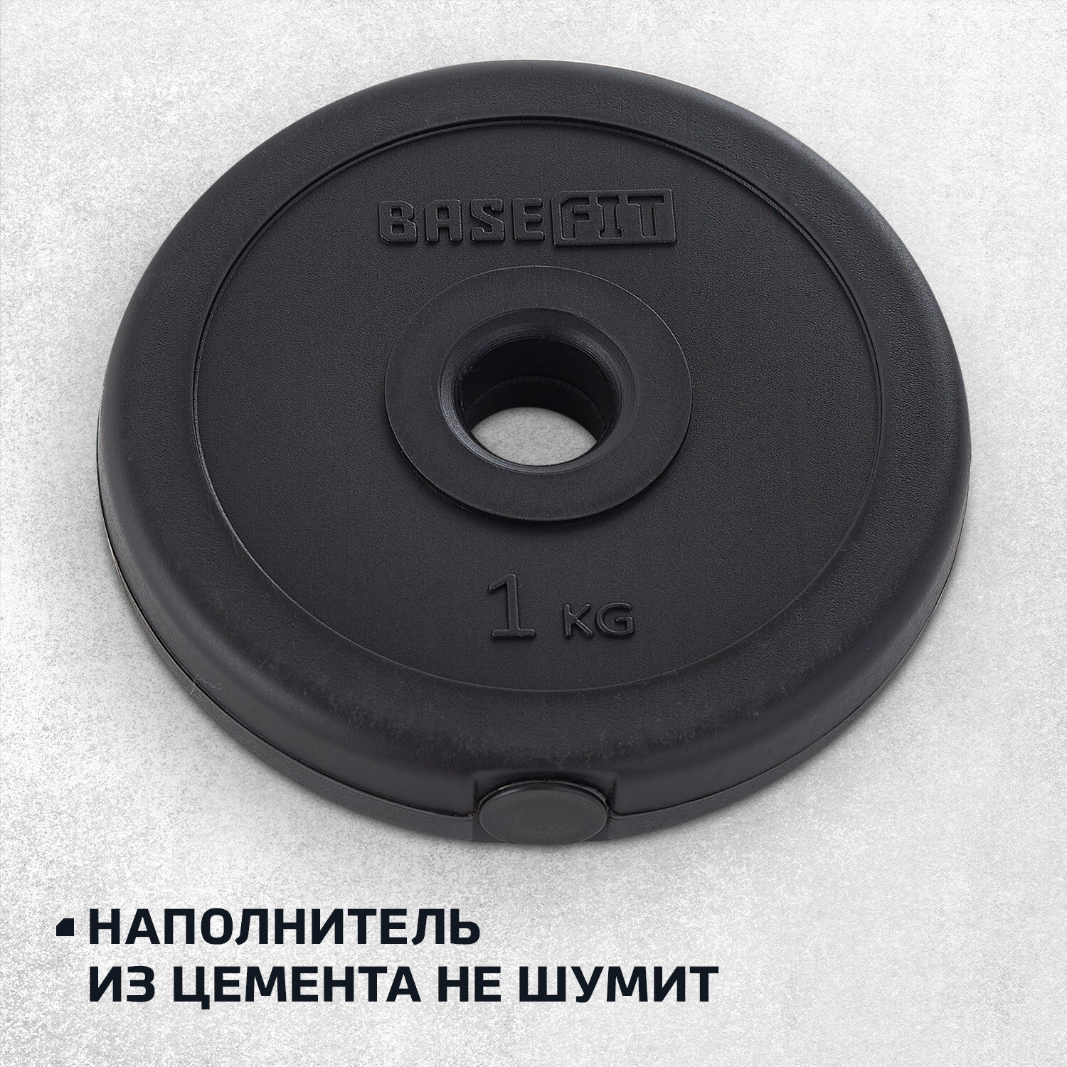 Купить Диск для штанги пластиковый BASEFIT BB-203 1 кг, d=26 мм, цвет черный