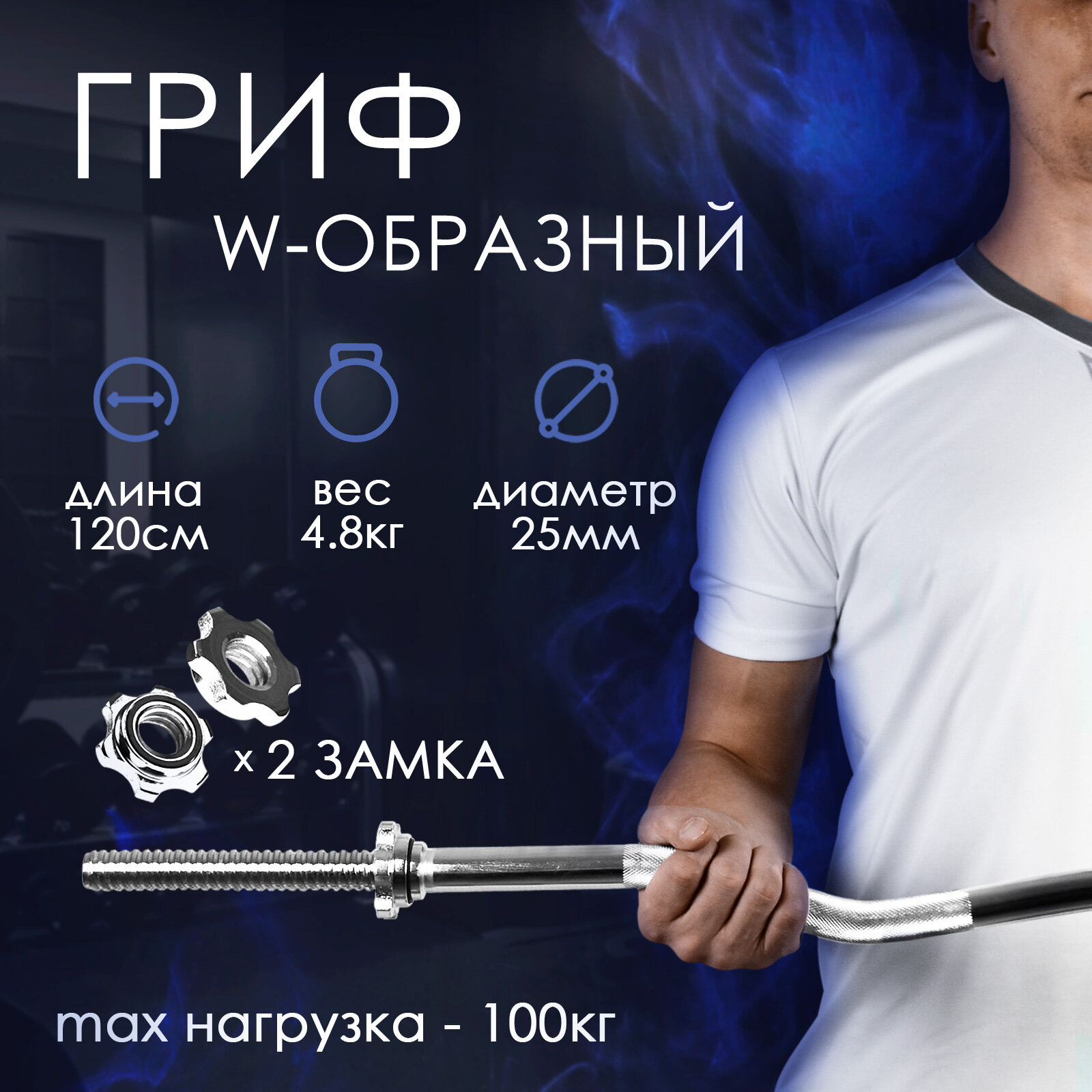 Гриф для штанги CLIFF изогнутый 1,2м d-25мм, хромированный, с гайками интересное:
