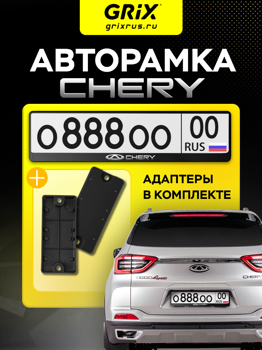 Купить Grix Рамка автомобильная с надписью "CHERY" / Адаптеры номера авто для китайских автомобилей