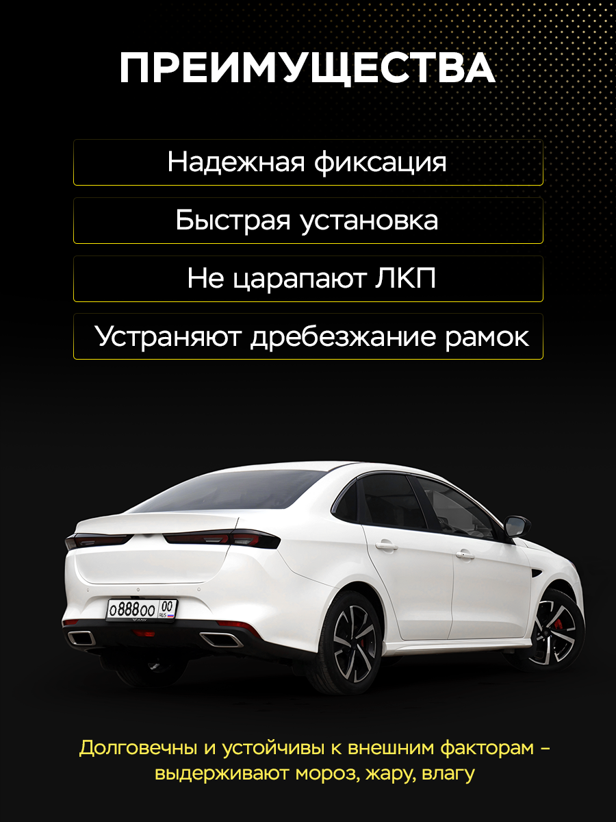 Grix Рамка автомобильная для госномера без надписи черная + Адаптеры для рамки номерного знака на китайские авто