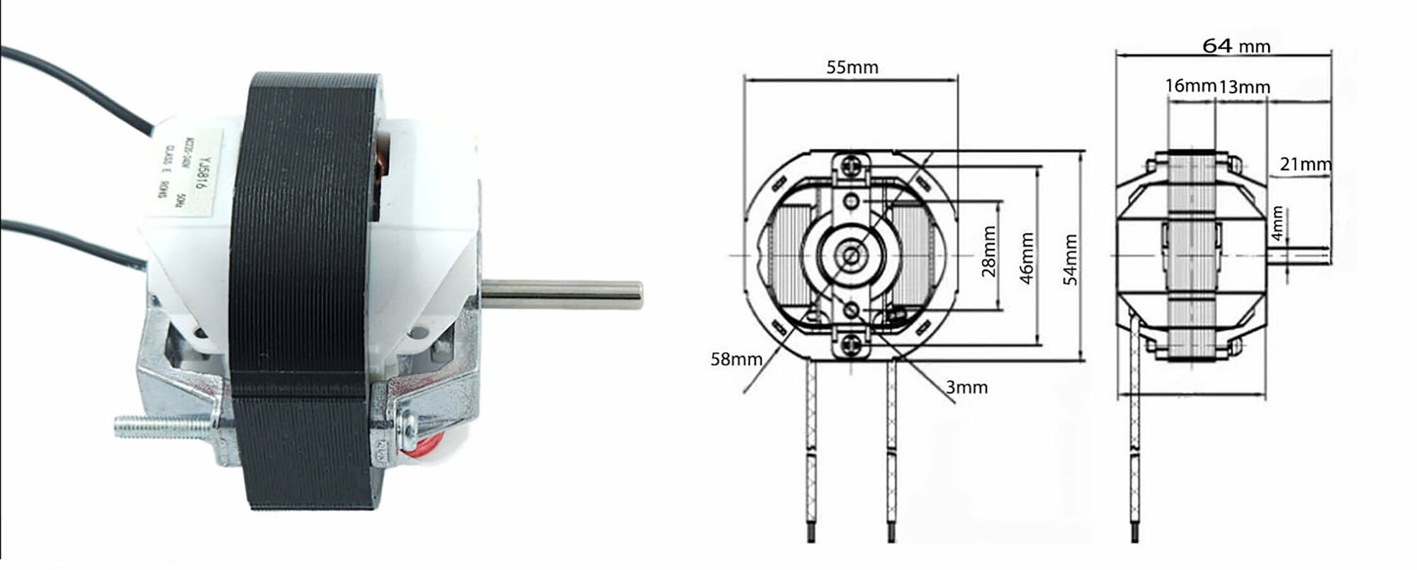 Купить Мотор YJ58-16 универсальный, для вытяжек, тепловых пушек, сушилок и. т. д