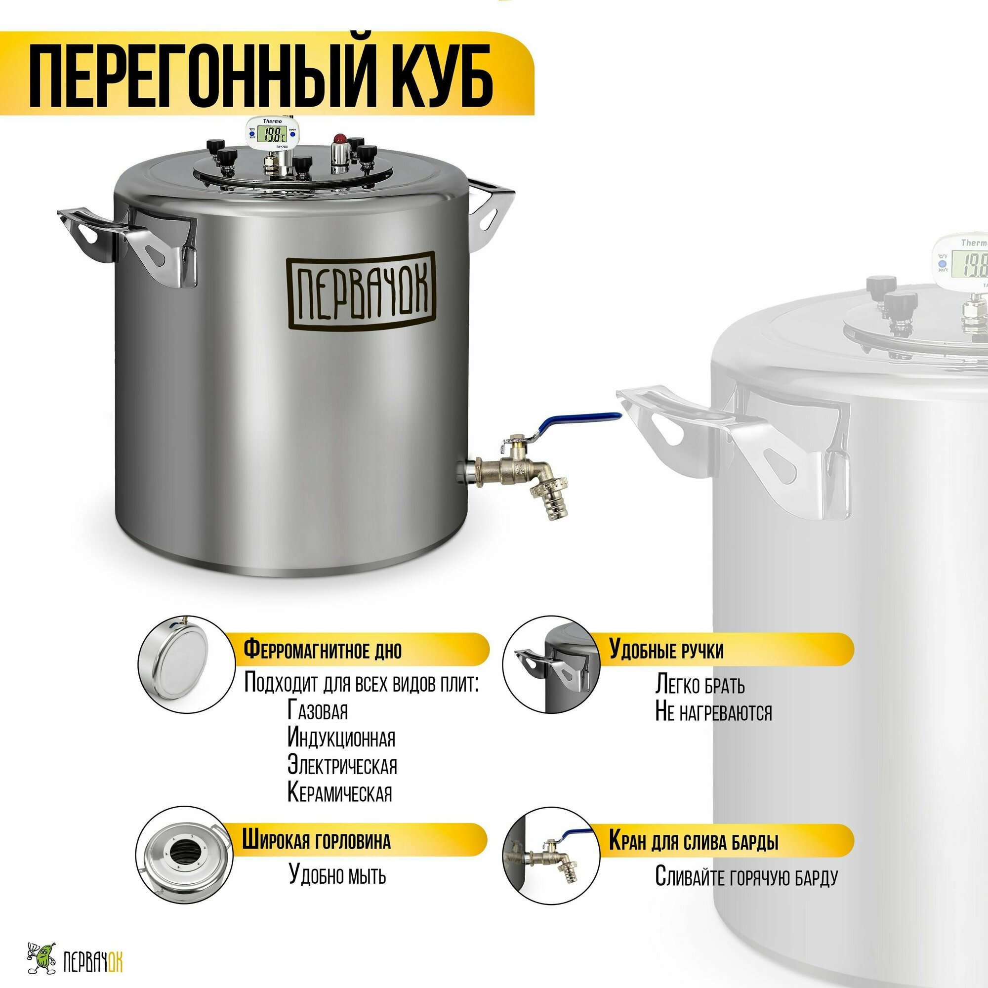 Первач Дистиллятор домашний «Традиция» № 4, 20 л, термометр, клапан избыточного давления