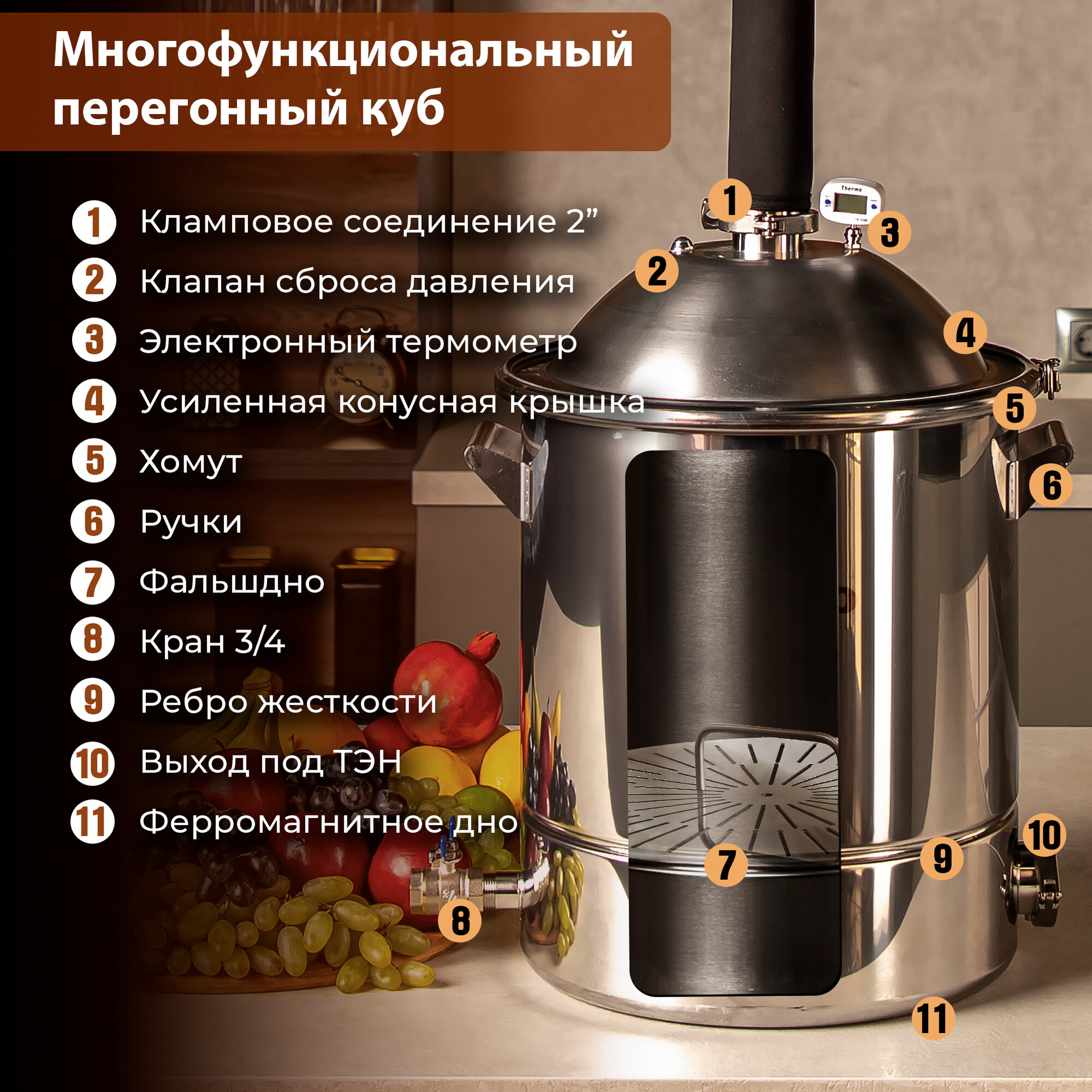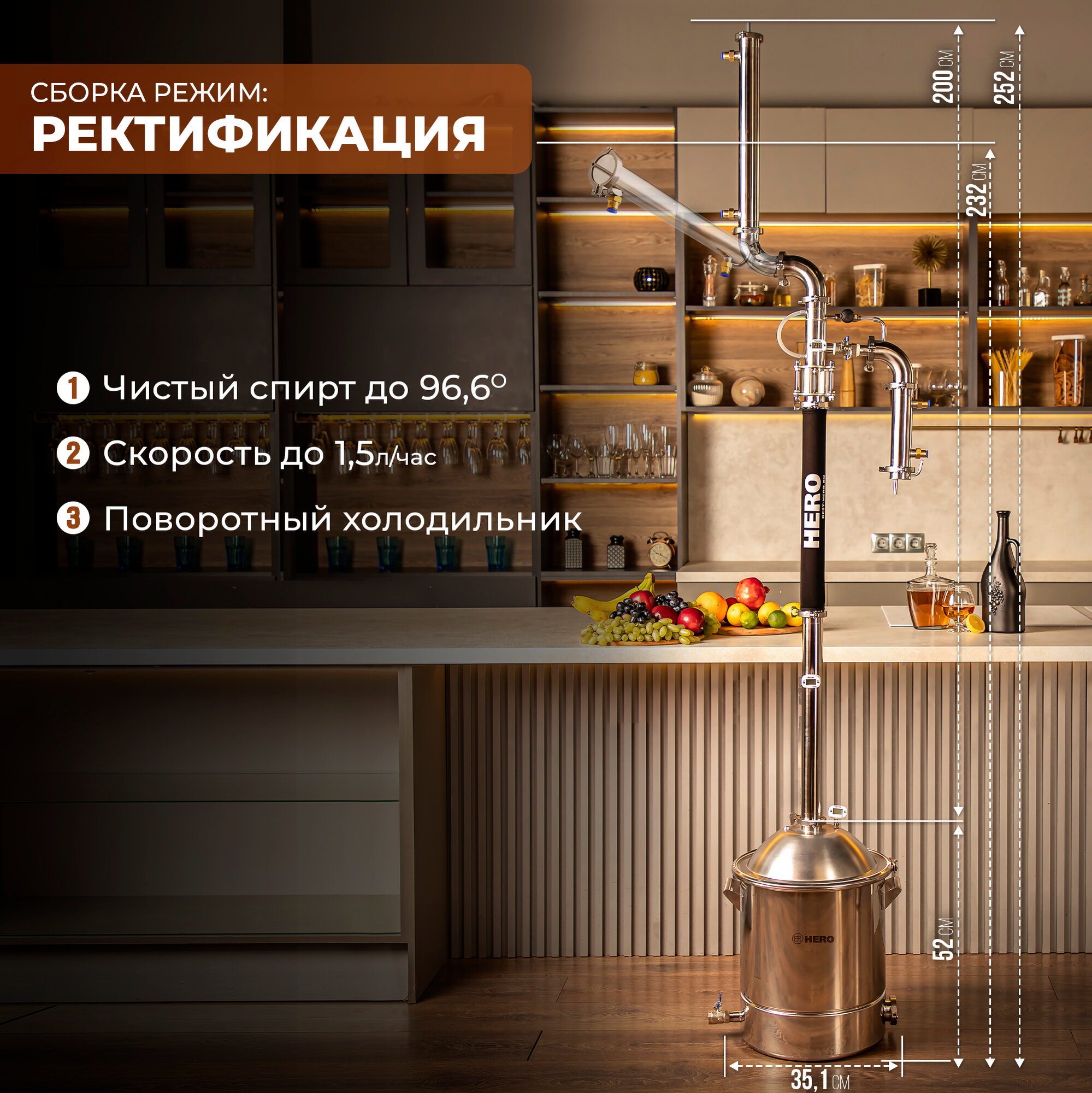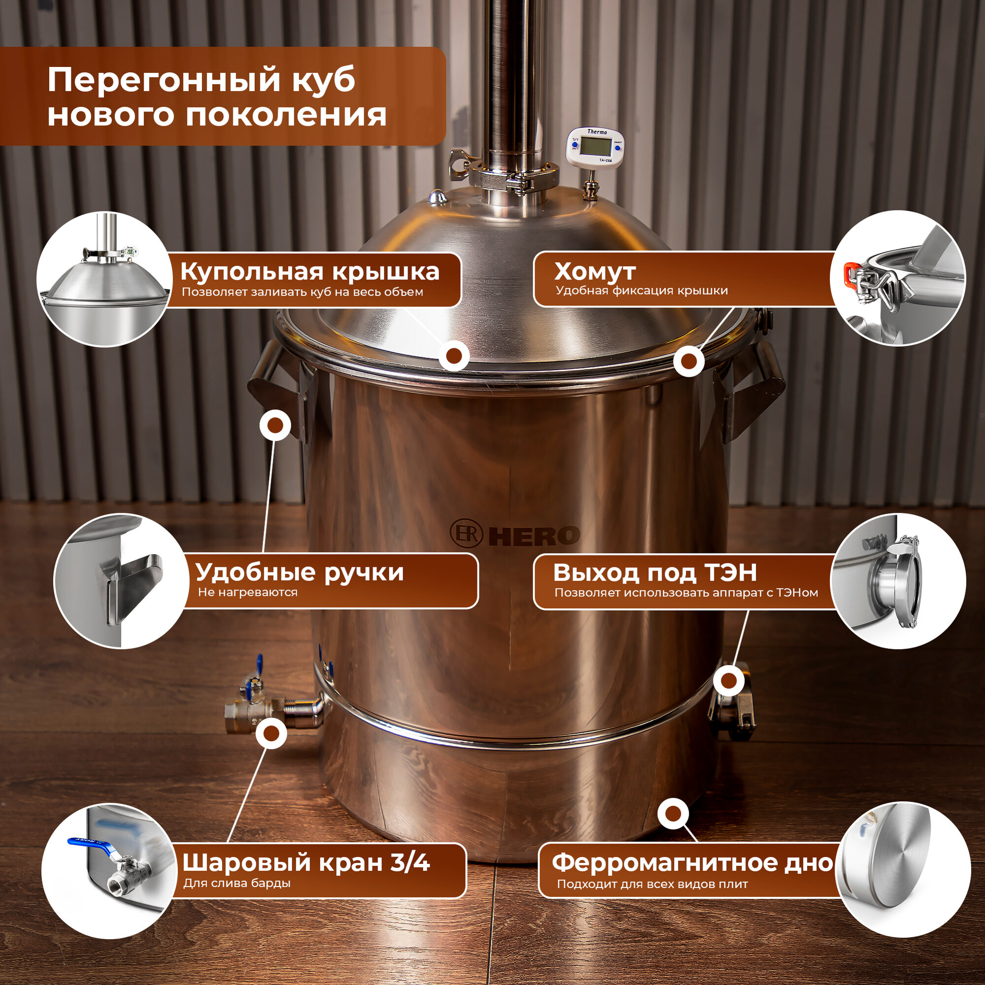 Самогонный аппарат HERO (Хиро) 37 литров, бражная колонна 2 дюйма с узлом отбора 2в1 по пару и жидкости интересное: