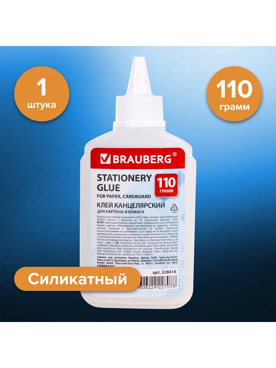Клей канцелярский силикатный BRAUBERG "Standard" (для 50шт интересное:
