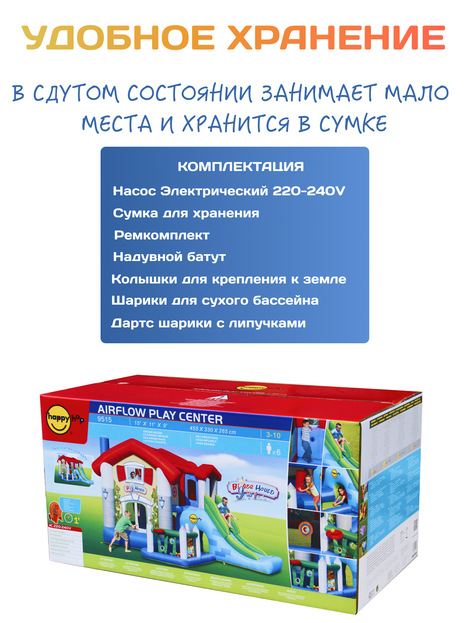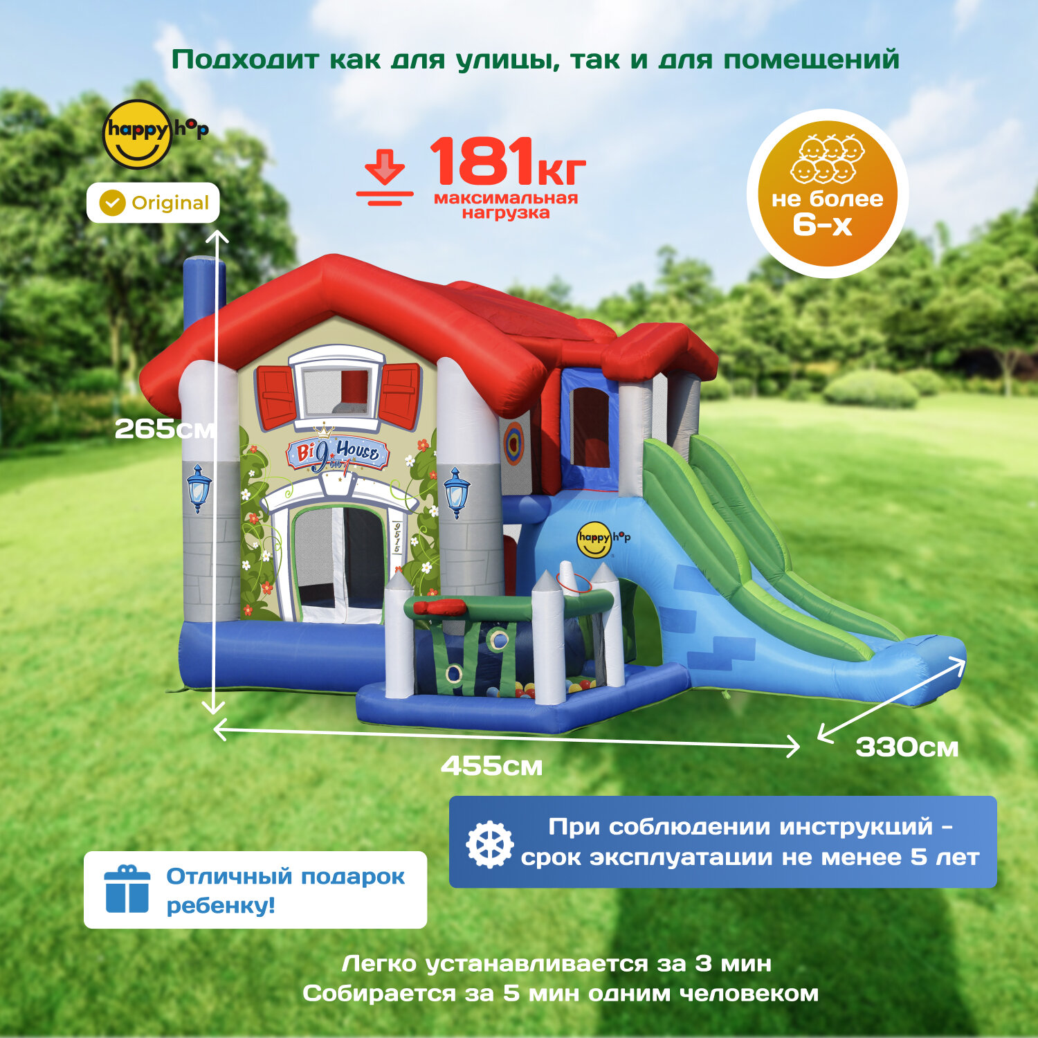 Детский надувной батут для дома и улицы Happy Hop "В гостях у сказки", с горкой, с защитной сеткой, 455х330х265 см интересное: