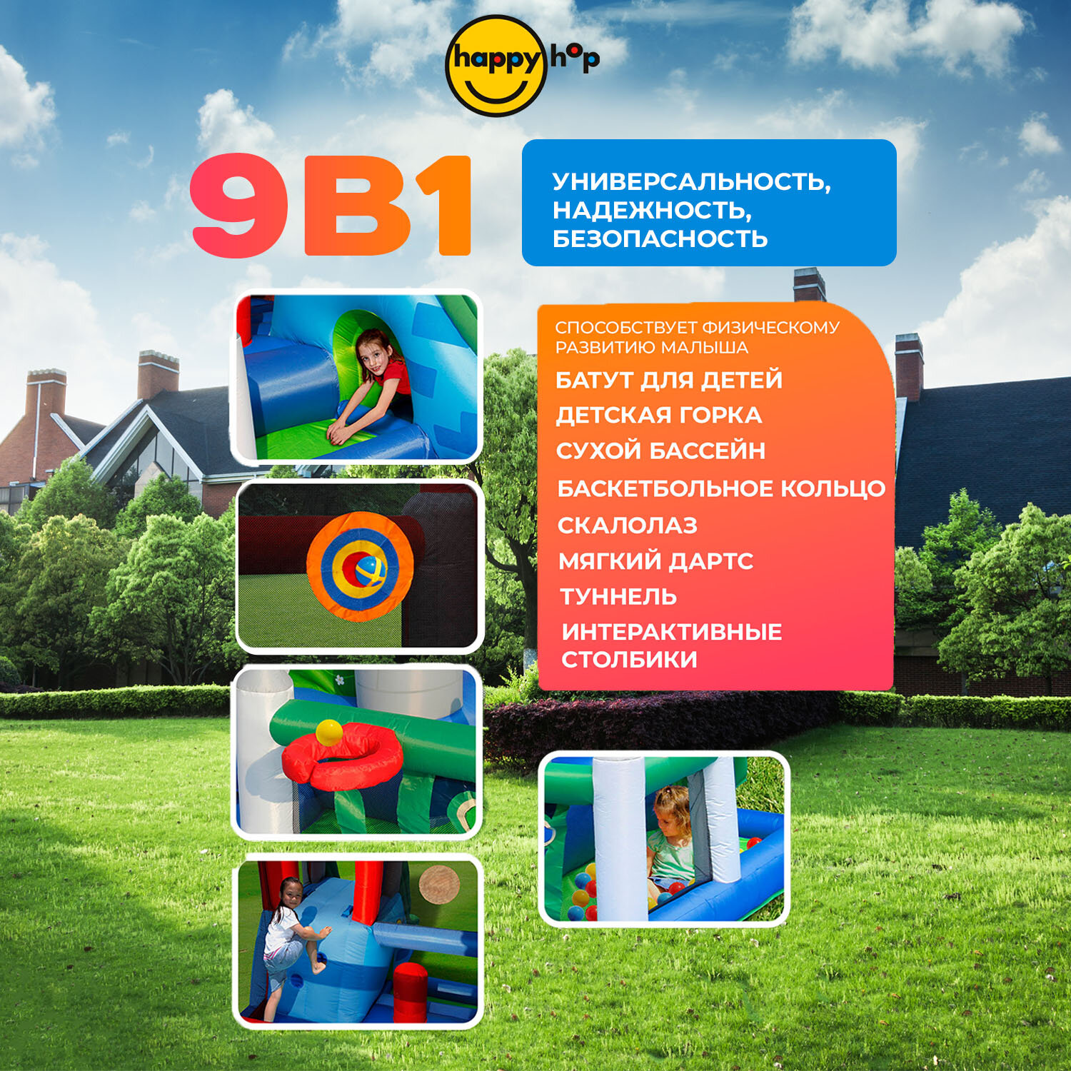 Купить Детский надувной батут для дома и улицы Happy Hop "В гостях у сказки", с горкой, с защитной сеткой, 455х330х265 см