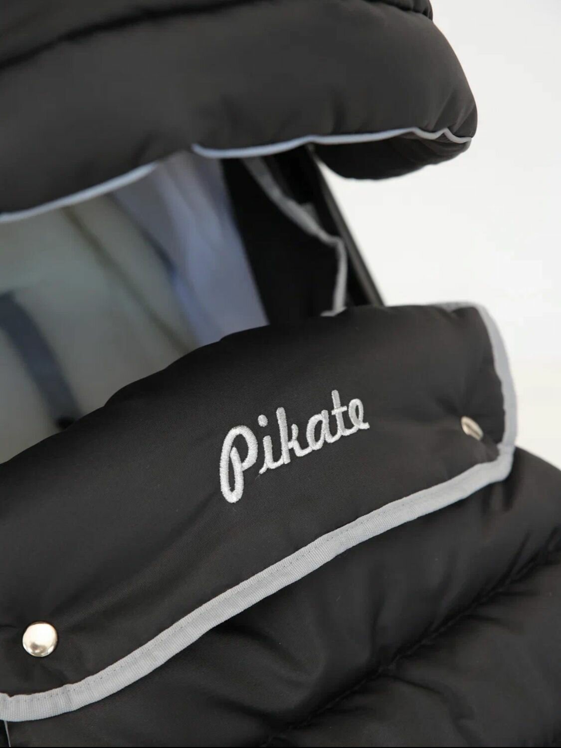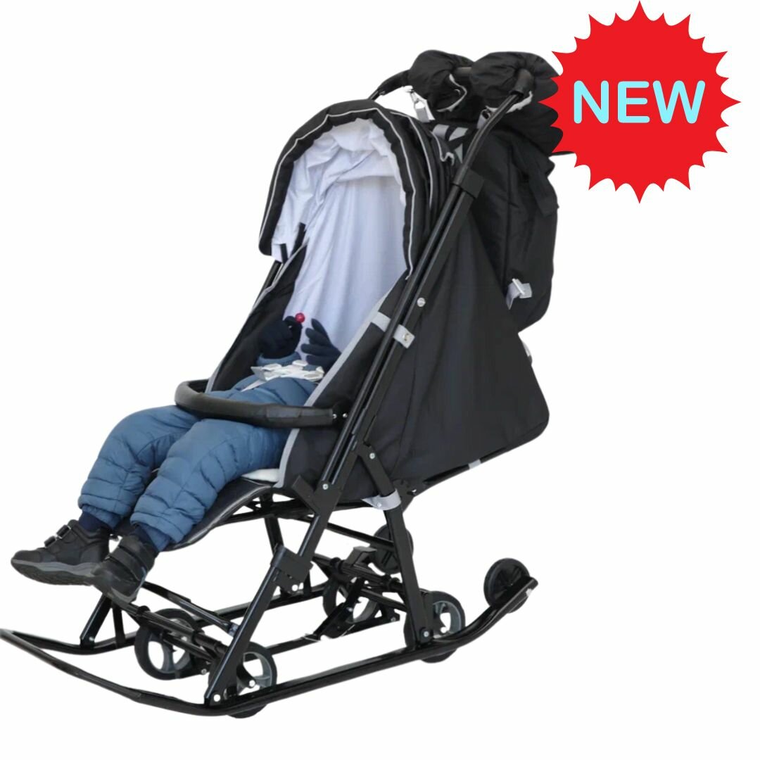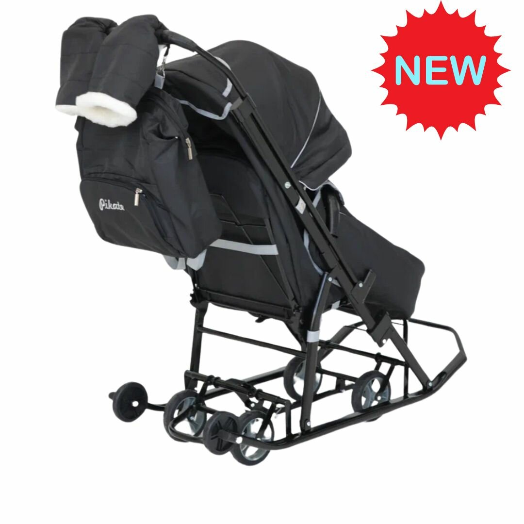Санки-коляска, детские, зимние на колесах Pikate "Grey ONYX" Рама цв. черный.