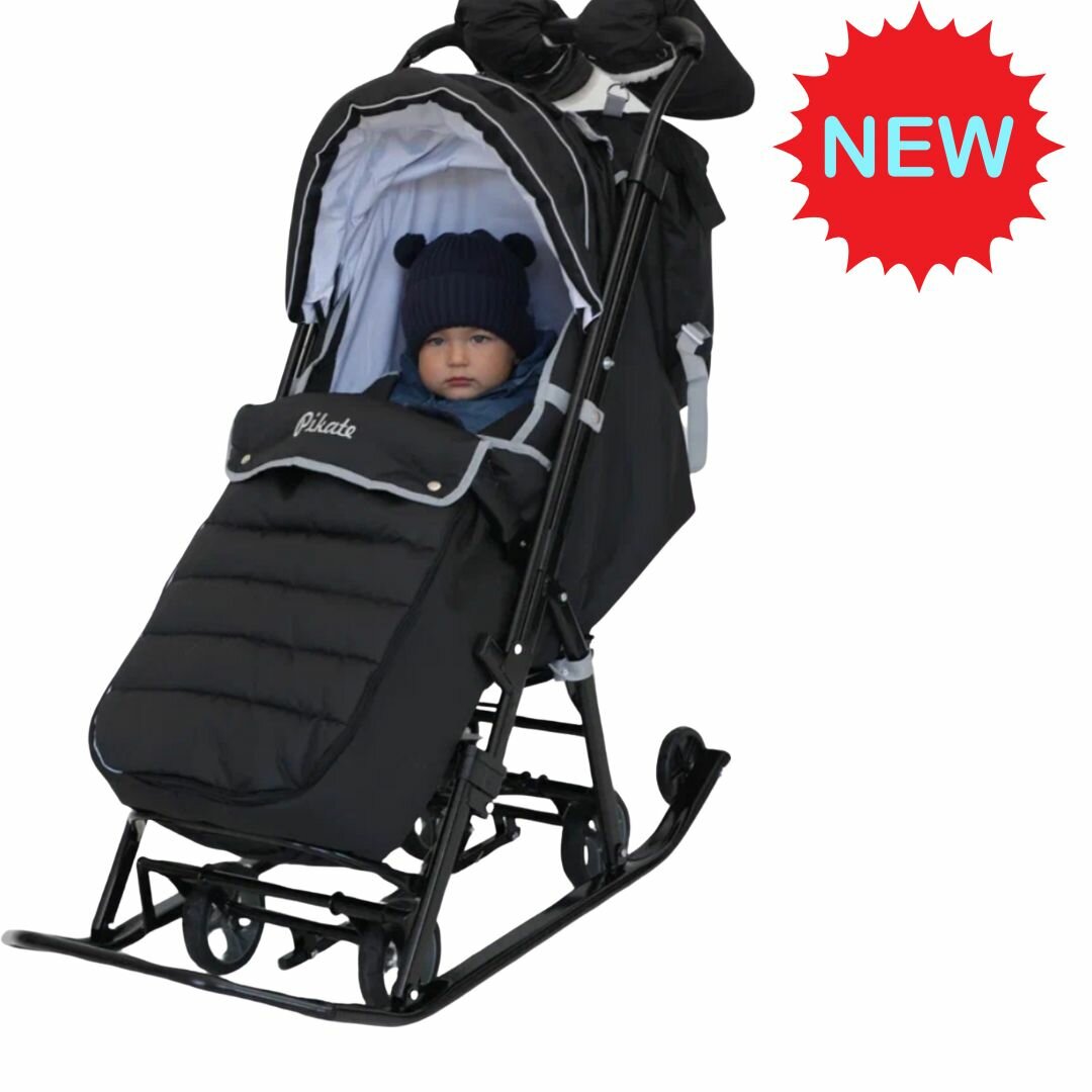 Купить Санки-коляска на колесах Pikate "LIMITED ONYX" 2024/2025г. г с бампером. NEW Рама цв. черный.